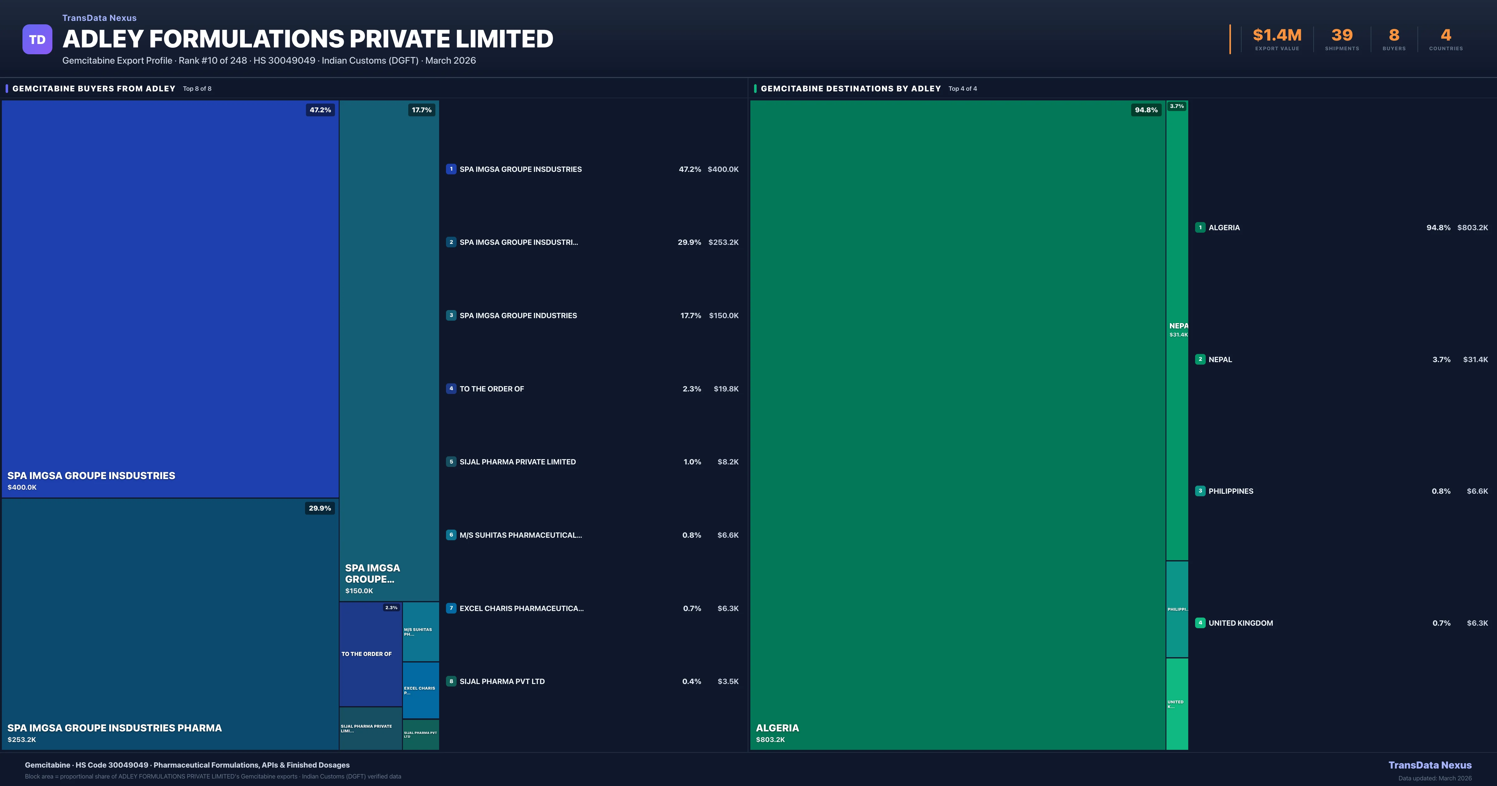Adley Formulations Private Limited — Gemcitabine Export Profile: Buyers & Destinations