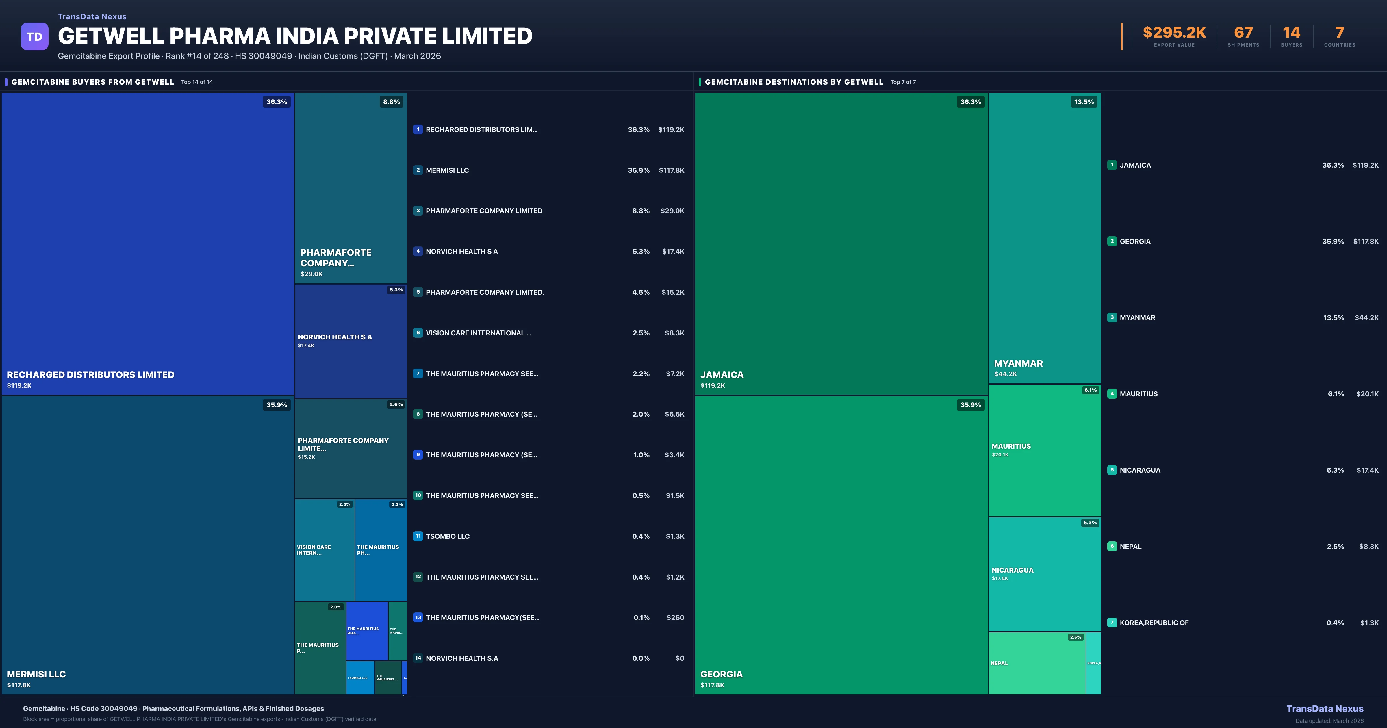 Indian Pharmaceutical Exporter · #14 for Gemcitabine · $295.2K export value · DGFT Verified
