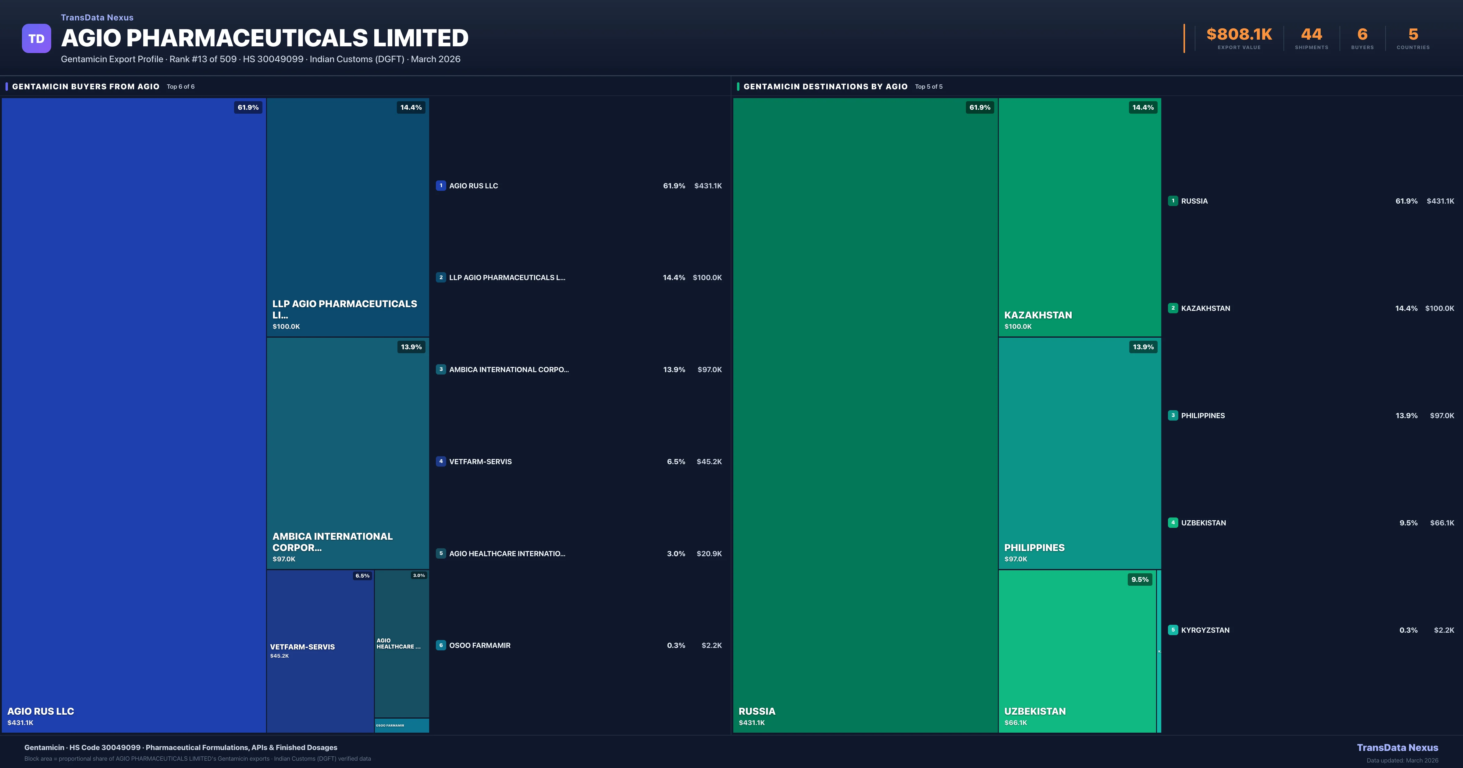 Agio Pharmaceuticals Limited — Gentamicin Export Profile: Buyers & Destinations