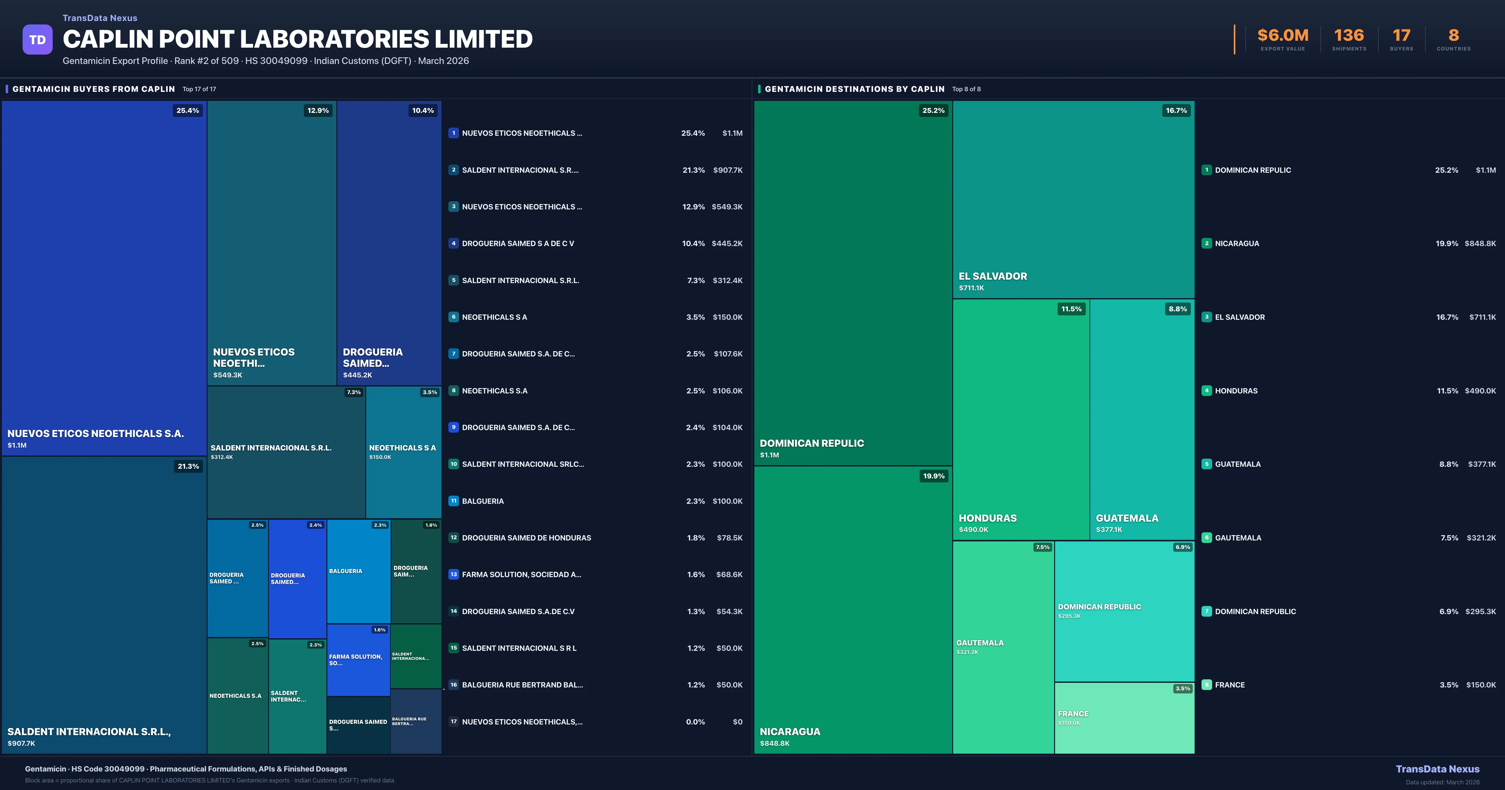 Caplin Point Laboratories Limited — Gentamicin Export Profile: Buyers & Destinations