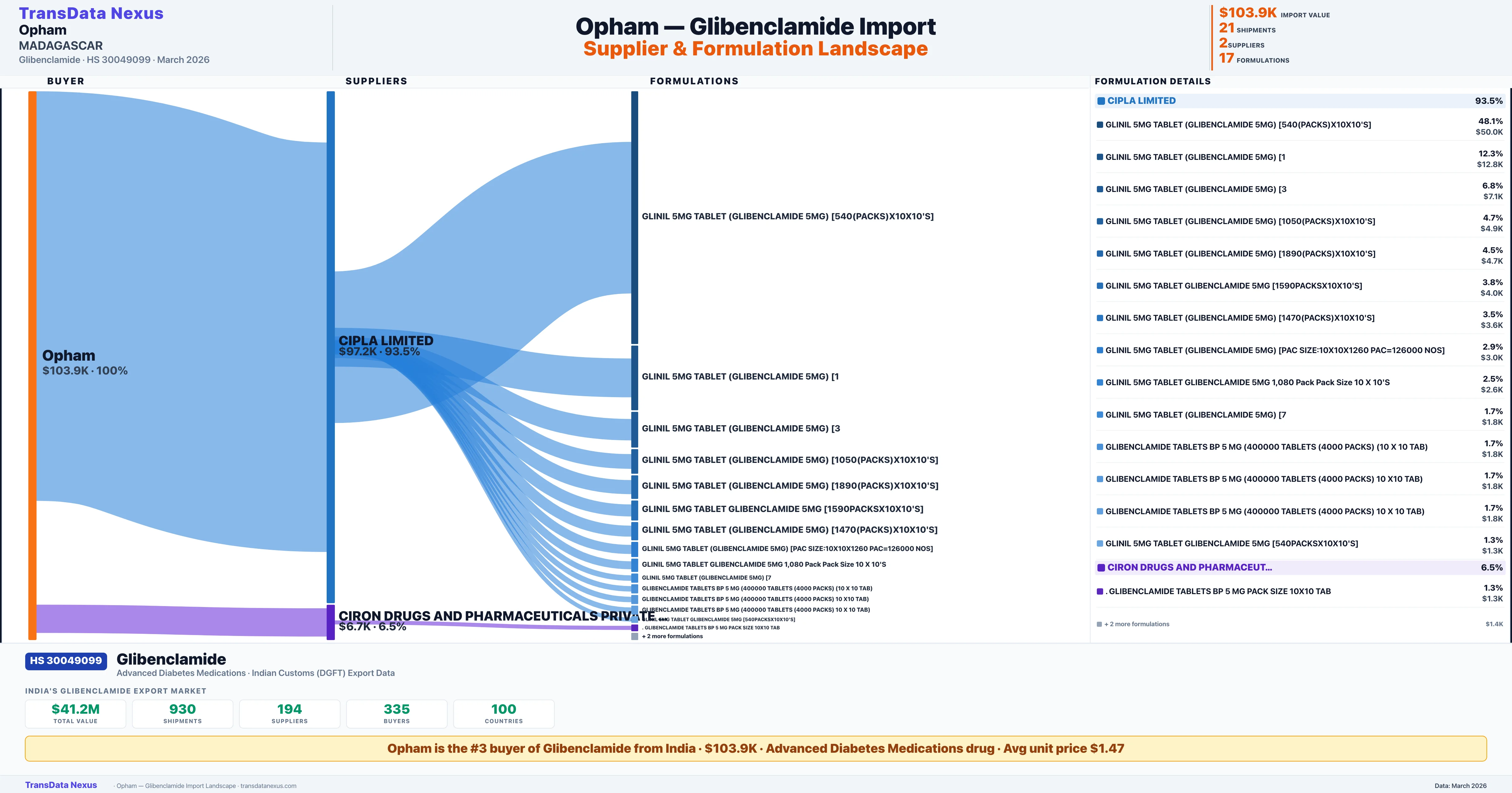 OPHAM — Glibenclamide Import Profile: Suppliers, Formulations & Sources