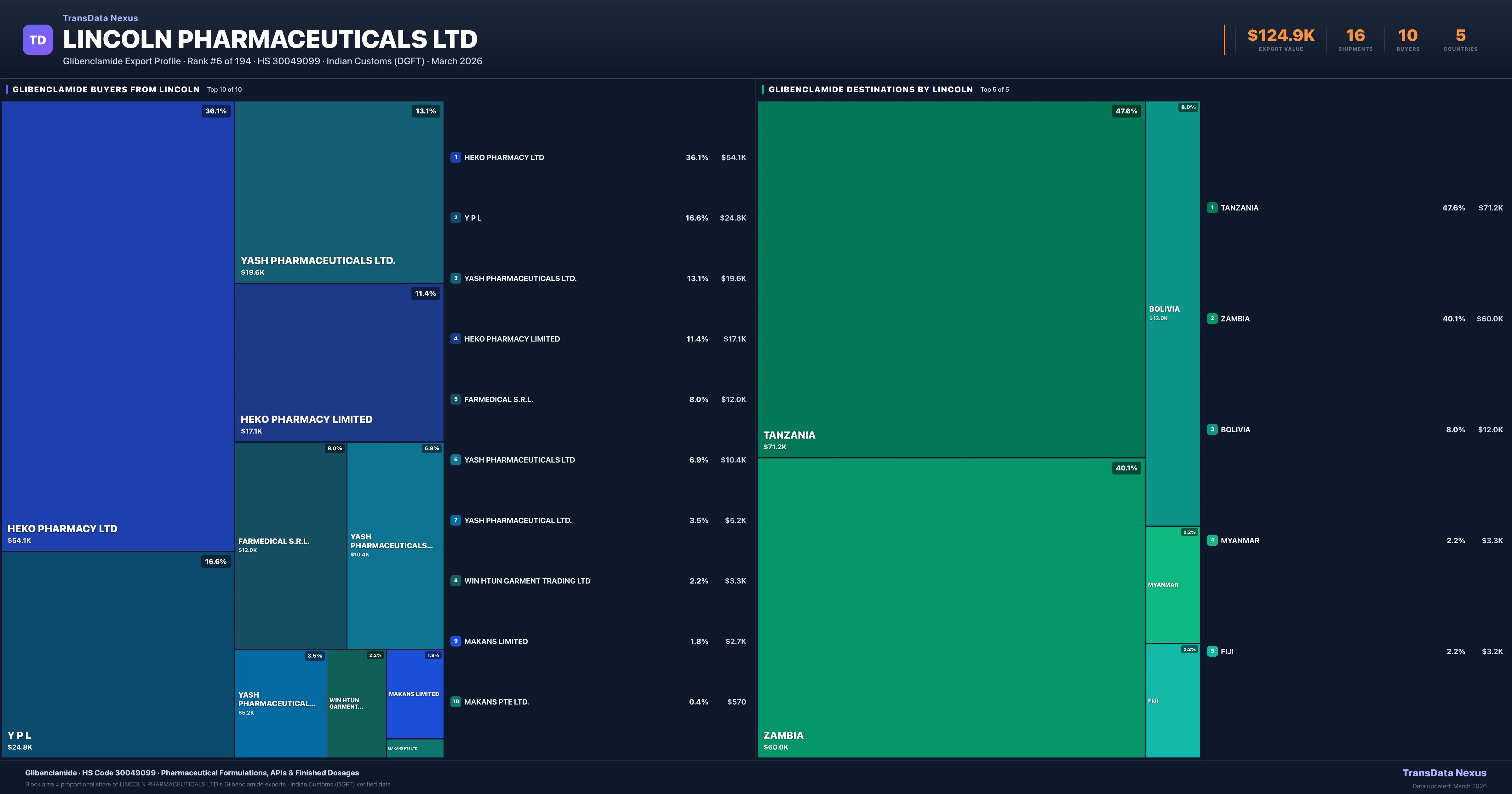Lincoln Pharmaceuticals Ltd — Glibenclamide Export Profile: Buyers & Destinations