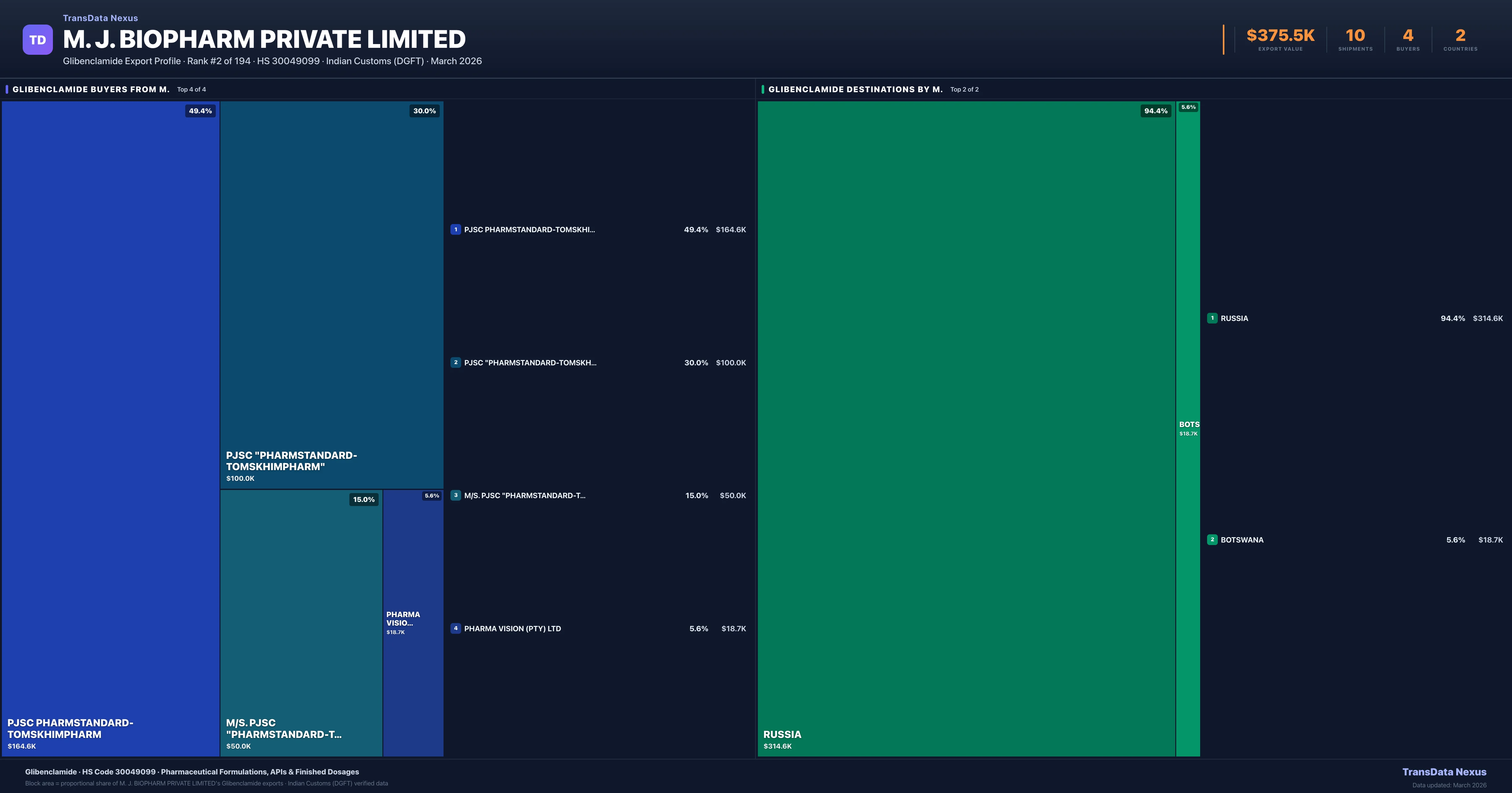M. J. Biopharm Private Limited — Glibenclamide Export Profile: Buyers & Destinations