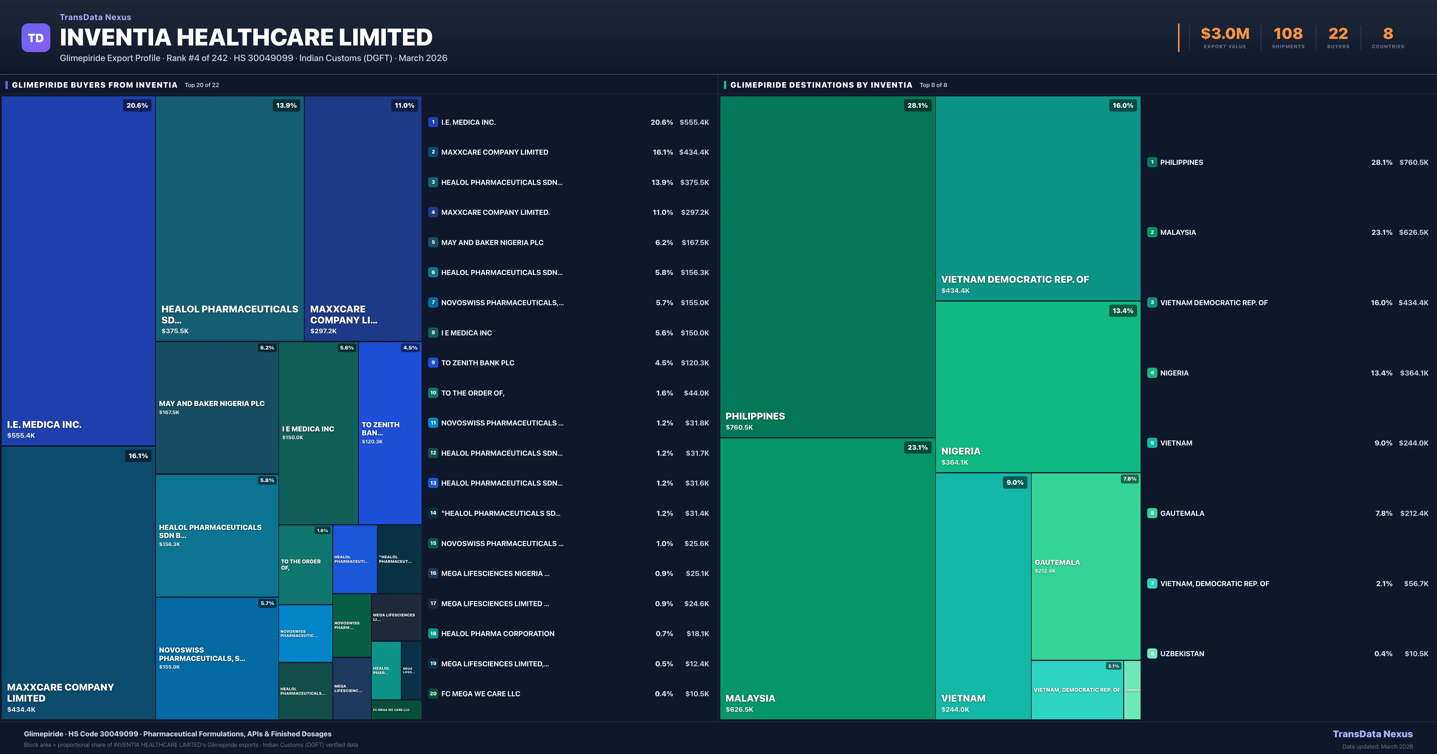 Inventia Healthcare Limited — Glimepiride Export Profile: Buyers & Destinations