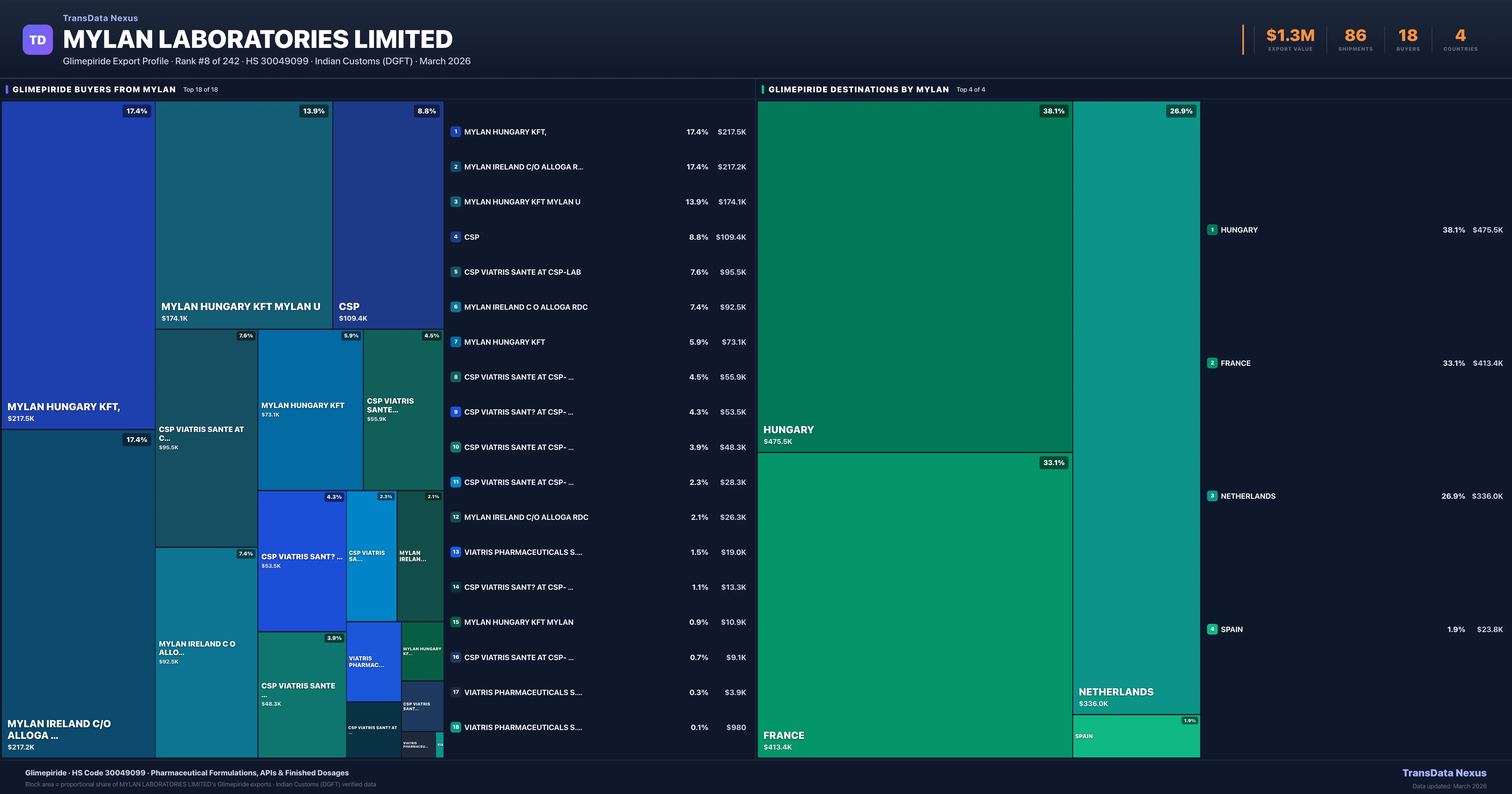 Mylan Laboratories Limited — Glimepiride Export Profile: Buyers & Destinations