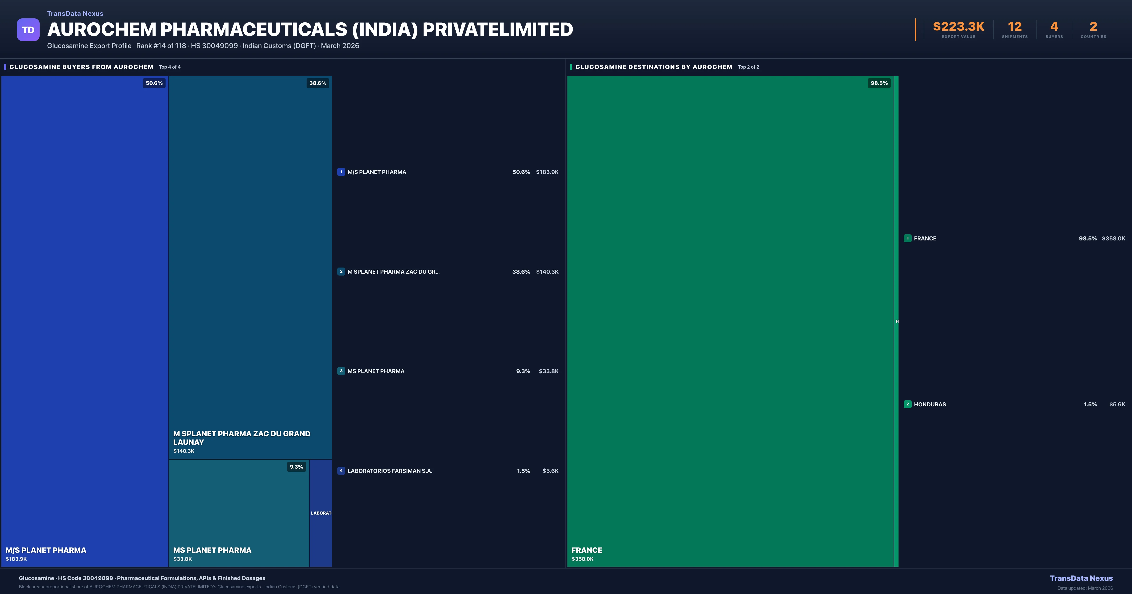 Aurochem Pharmaceuticals (india) Privatelimited — Glucosamine Export Profile: Buyers & Destinations
