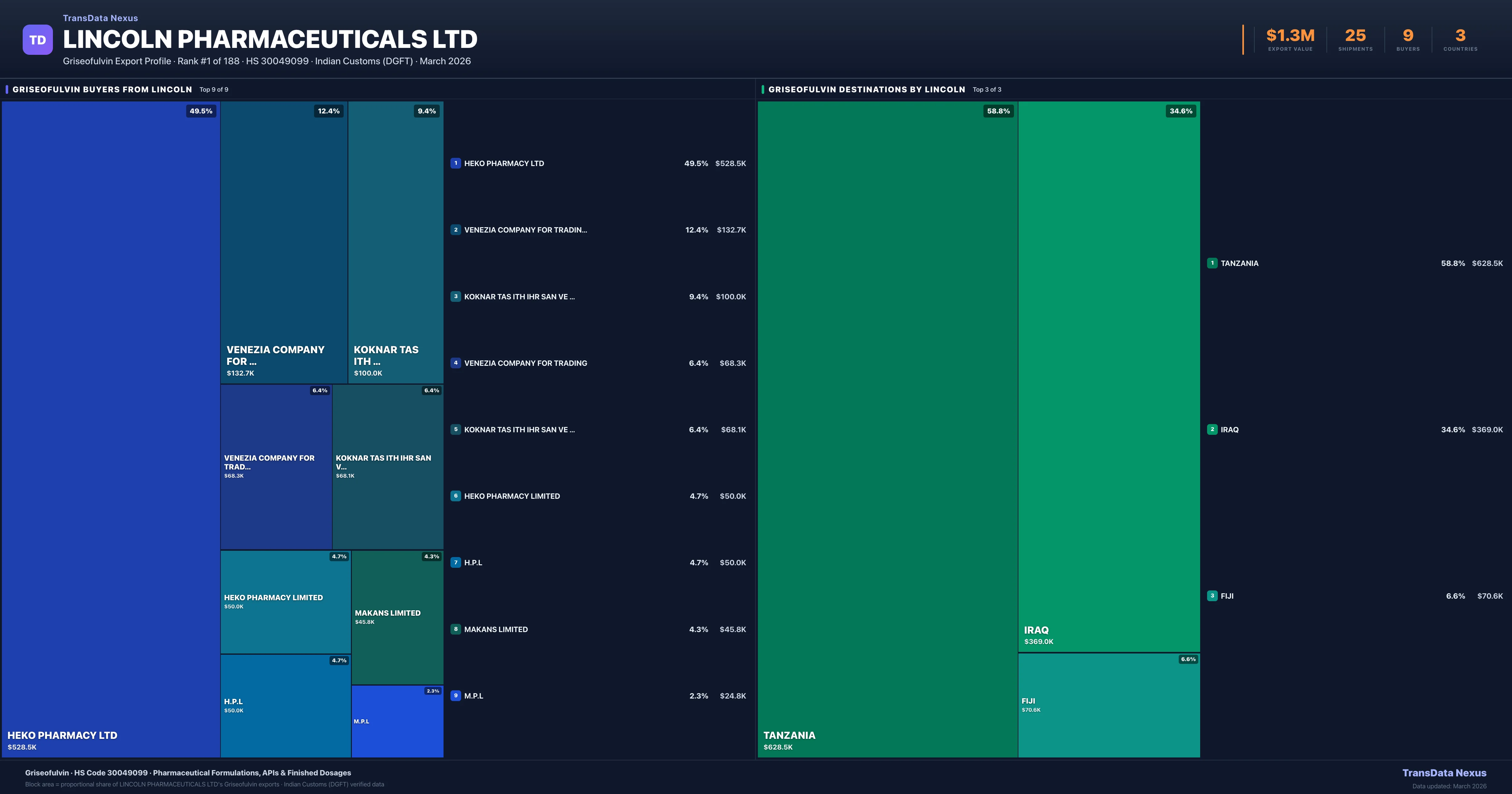 Lincoln Pharmaceuticals Ltd — Griseofulvin Export Profile: Buyers & Destinations