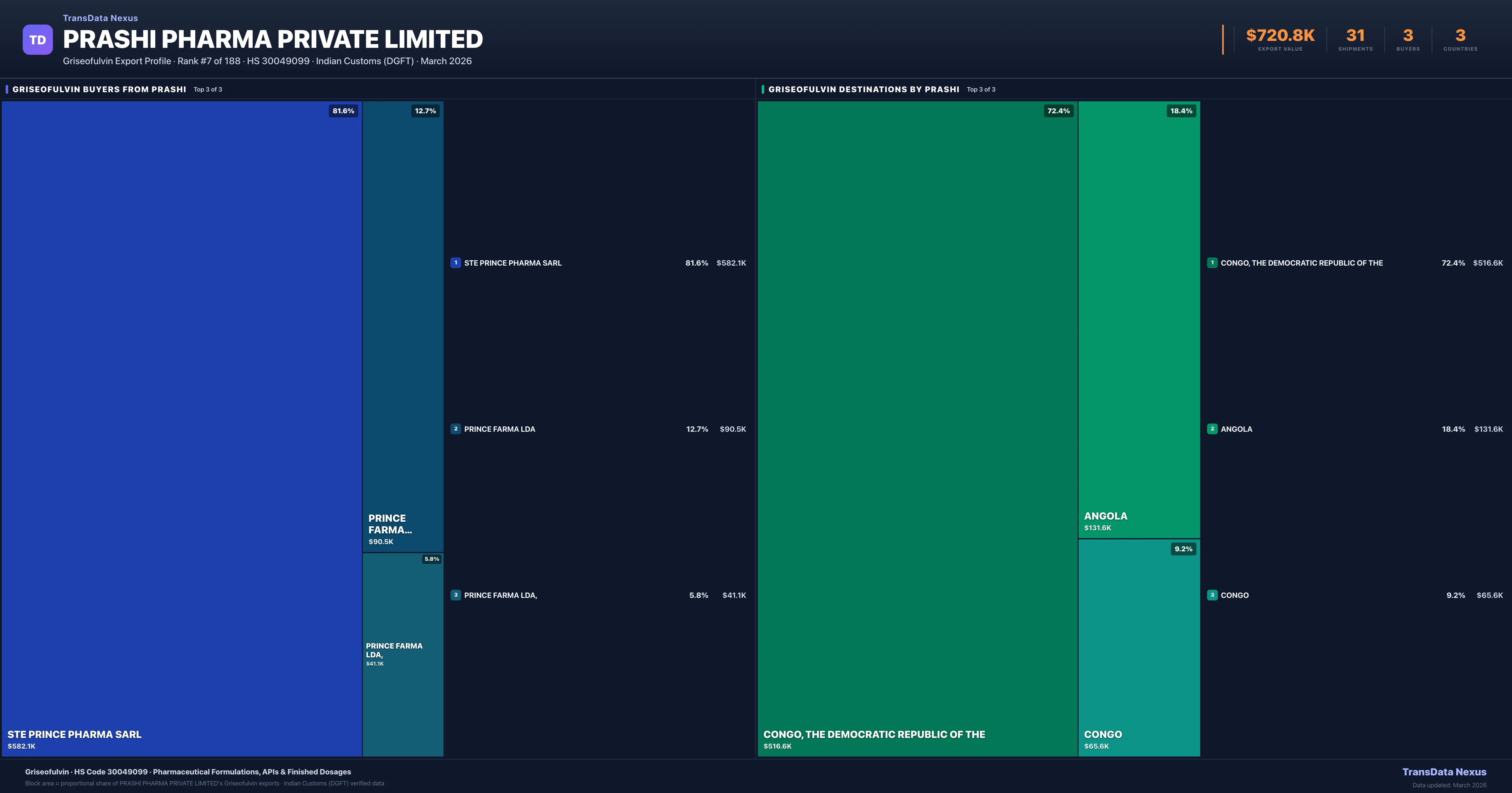 Prashi Pharma Private Limited — Griseofulvin Export Profile: Buyers & Destinations