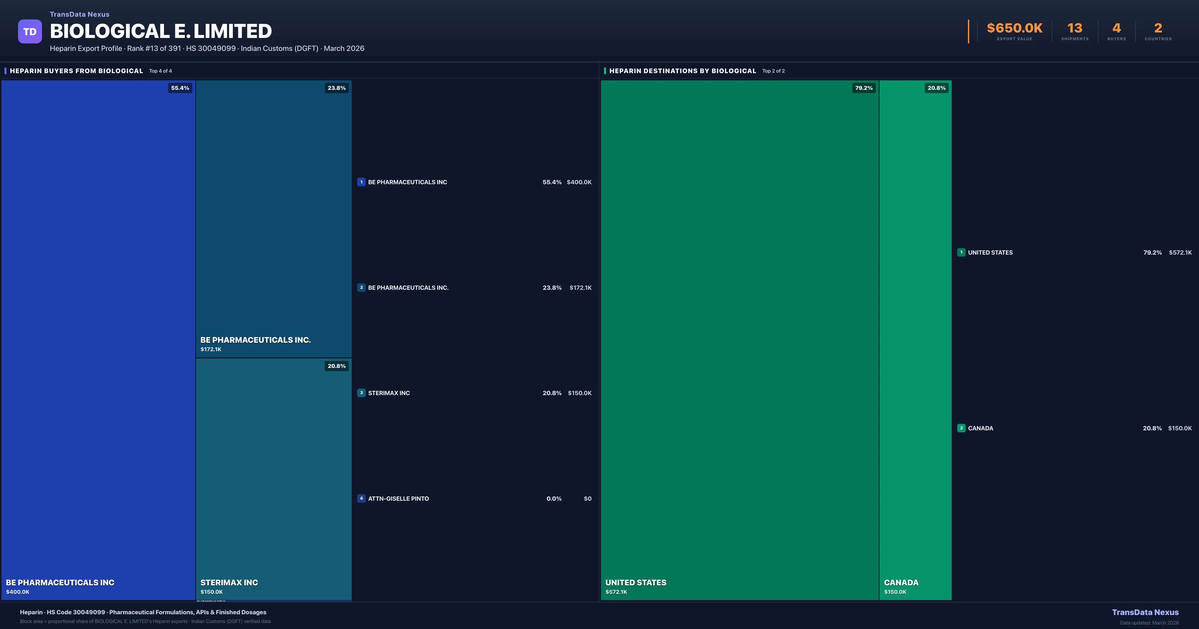 Biological E. Limited — Heparin Export Profile: Buyers & Destinations