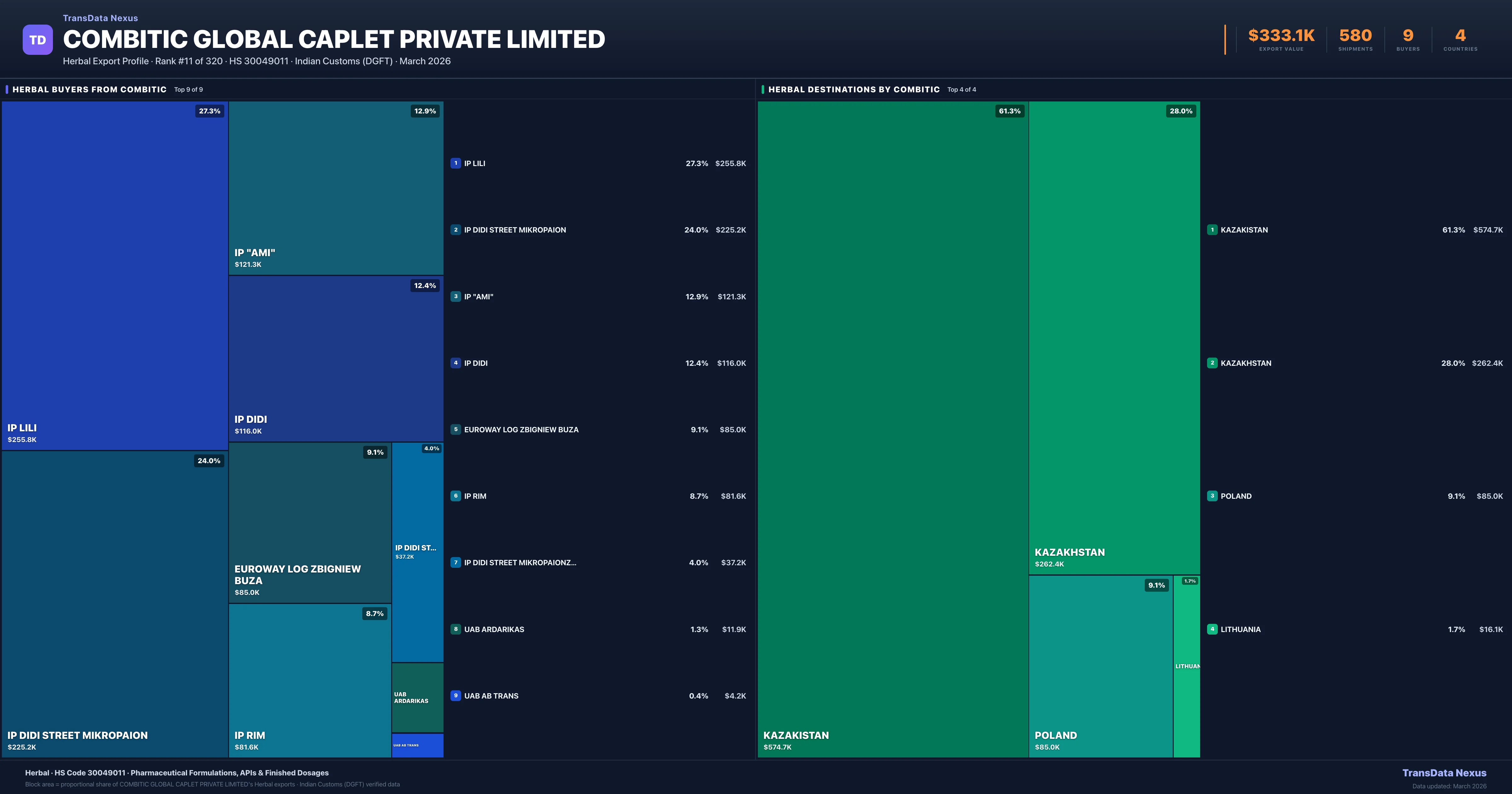 Combitic Global Caplet Private Limited — Herbal Export Profile: Buyers & Destinations