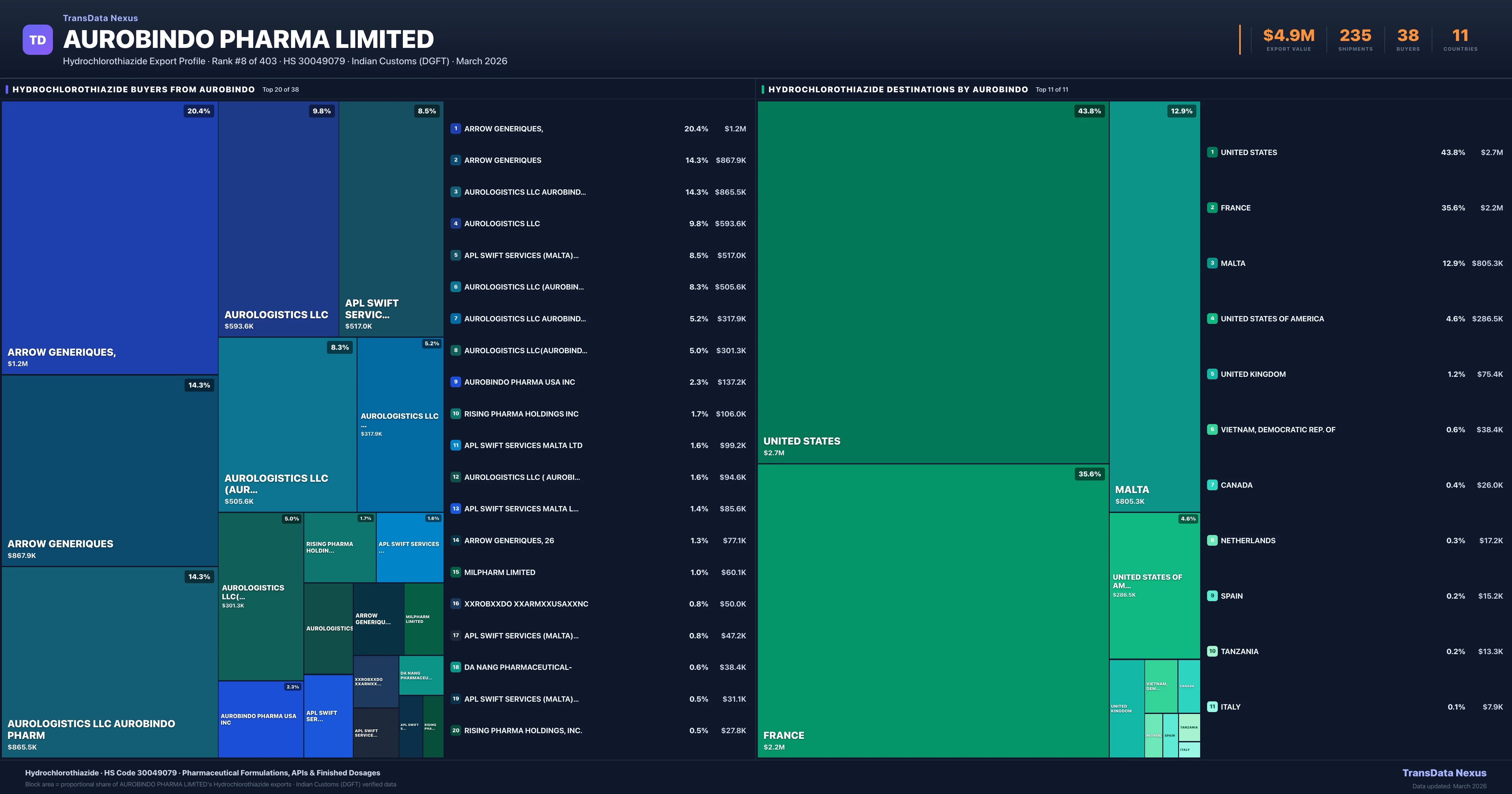 Aurobindo Pharma Limited — Hydrochlorothiazide Export Profile: Buyers & Destinations