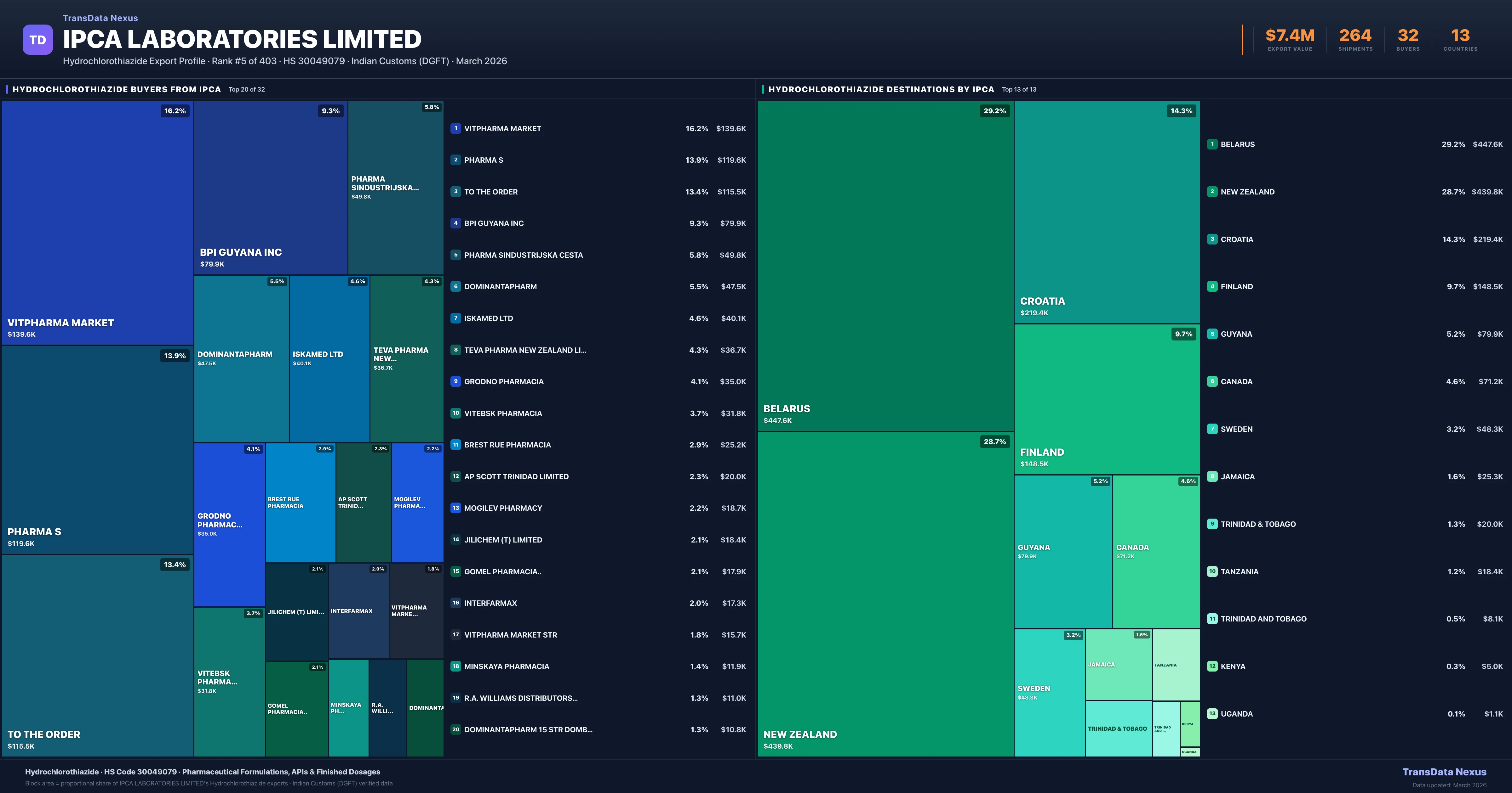 Ipca Laboratories Limited — Hydrochlorothiazide Export Profile: Buyers & Destinations