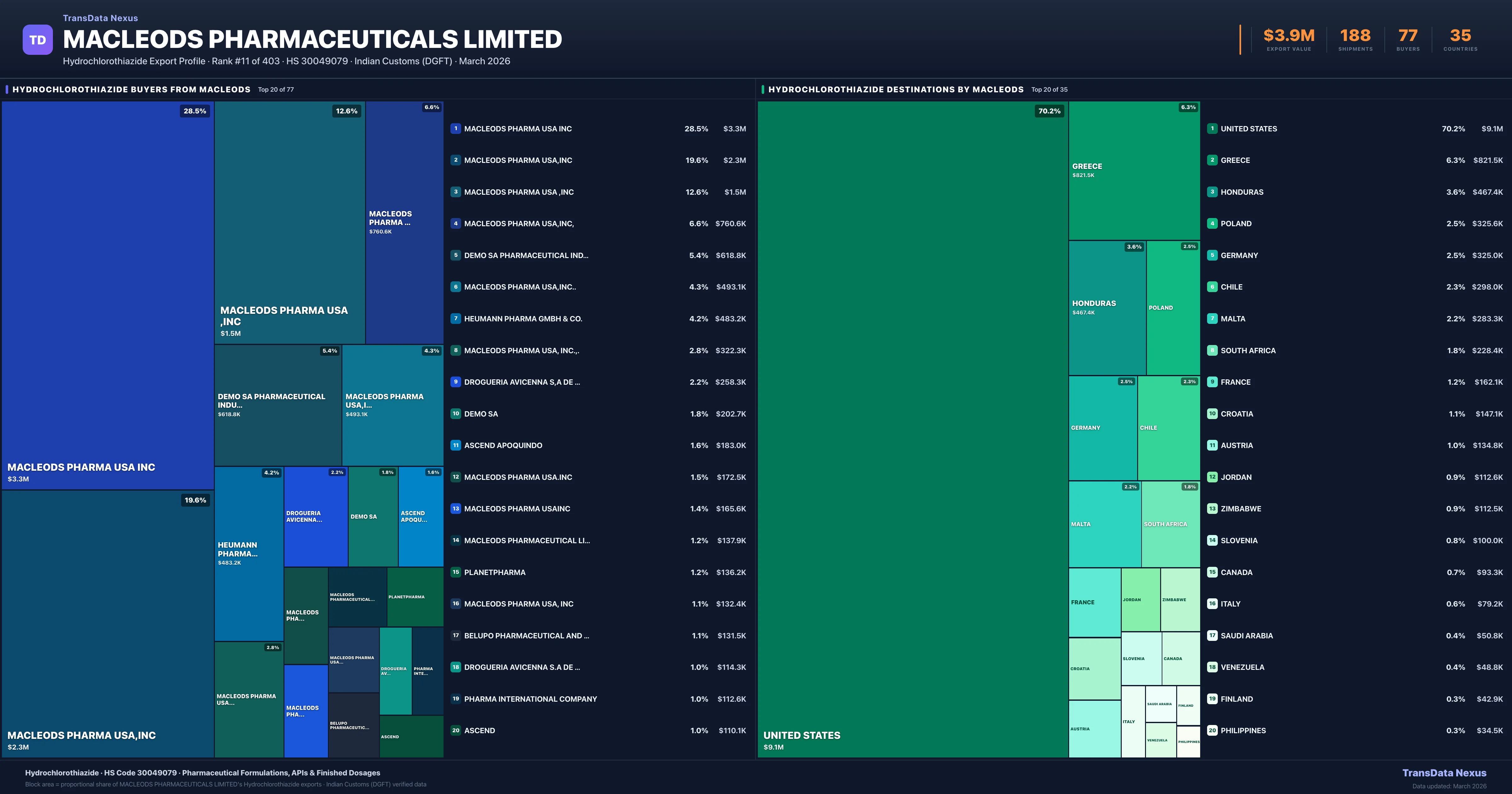 Macleods Pharmaceuticals Limited — Hydrochlorothiazide Export Profile: Buyers & Destinations