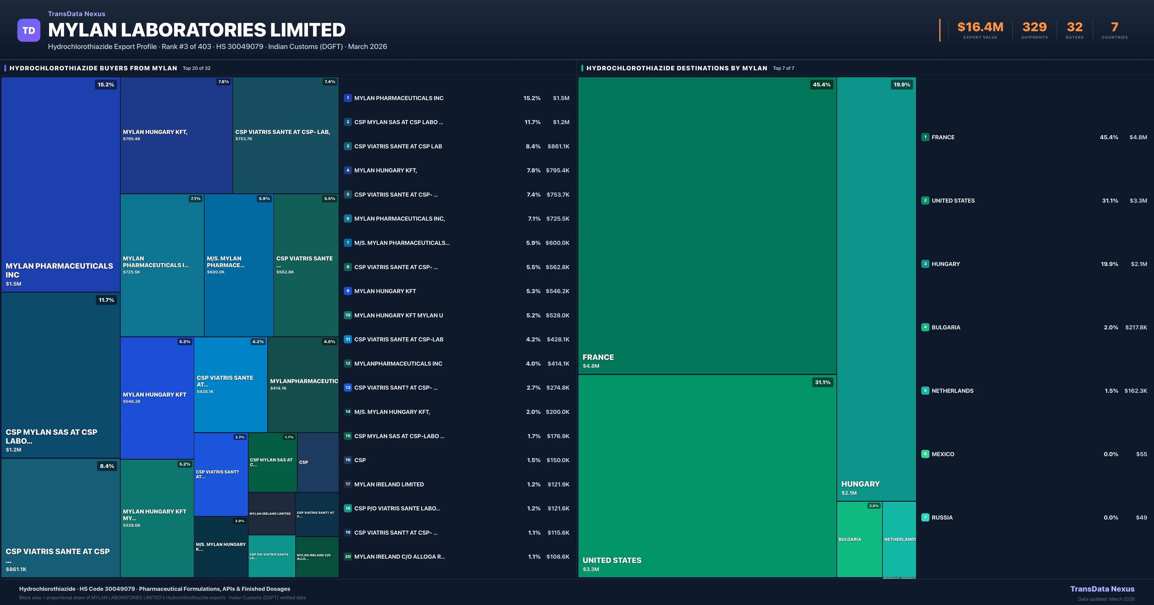 Mylan Laboratories Limited — Hydrochlorothiazide Export Profile: Buyers & Destinations