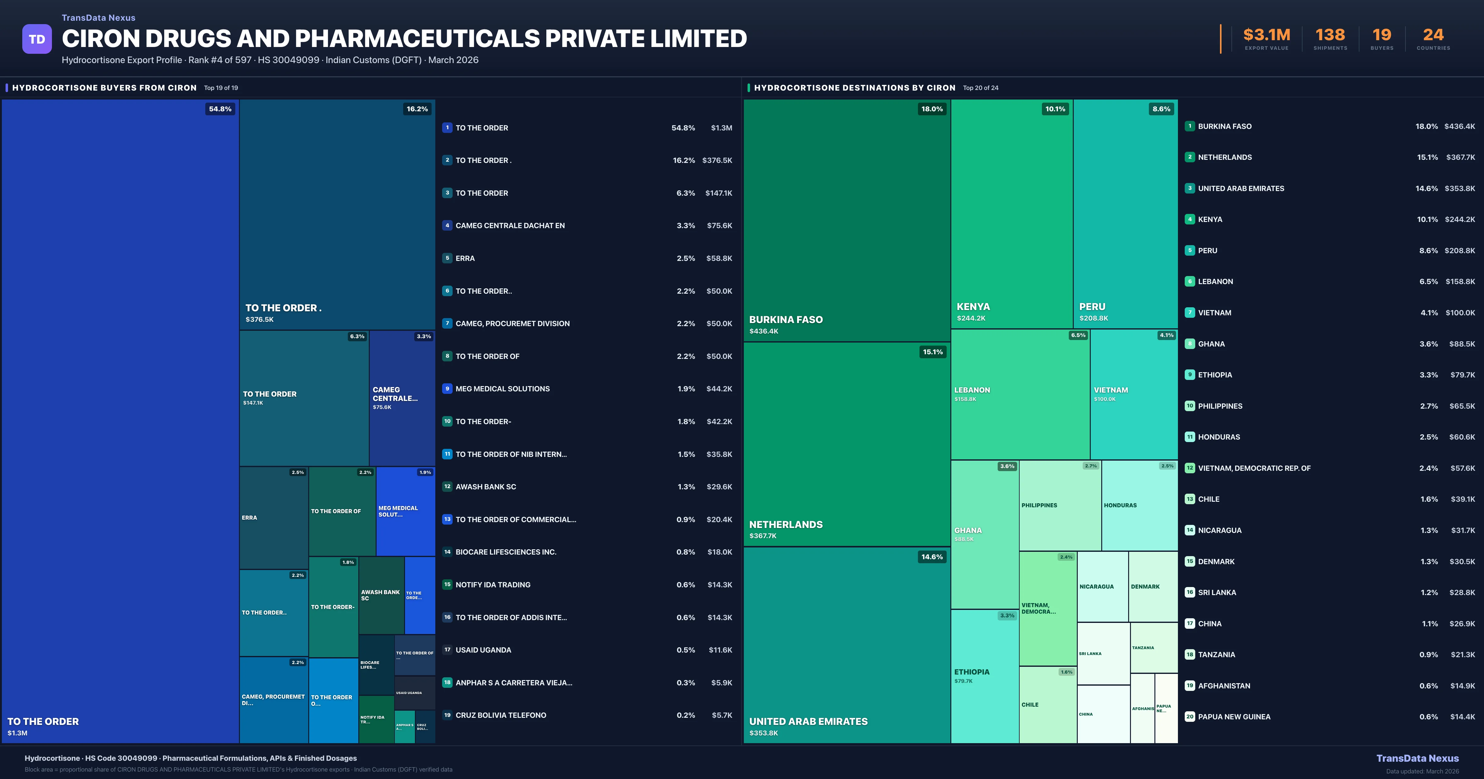 Ciron Drugs AND Pharmaceuticals Private Limited — Hydrocortisone Export Profile: Buyers & Destinations