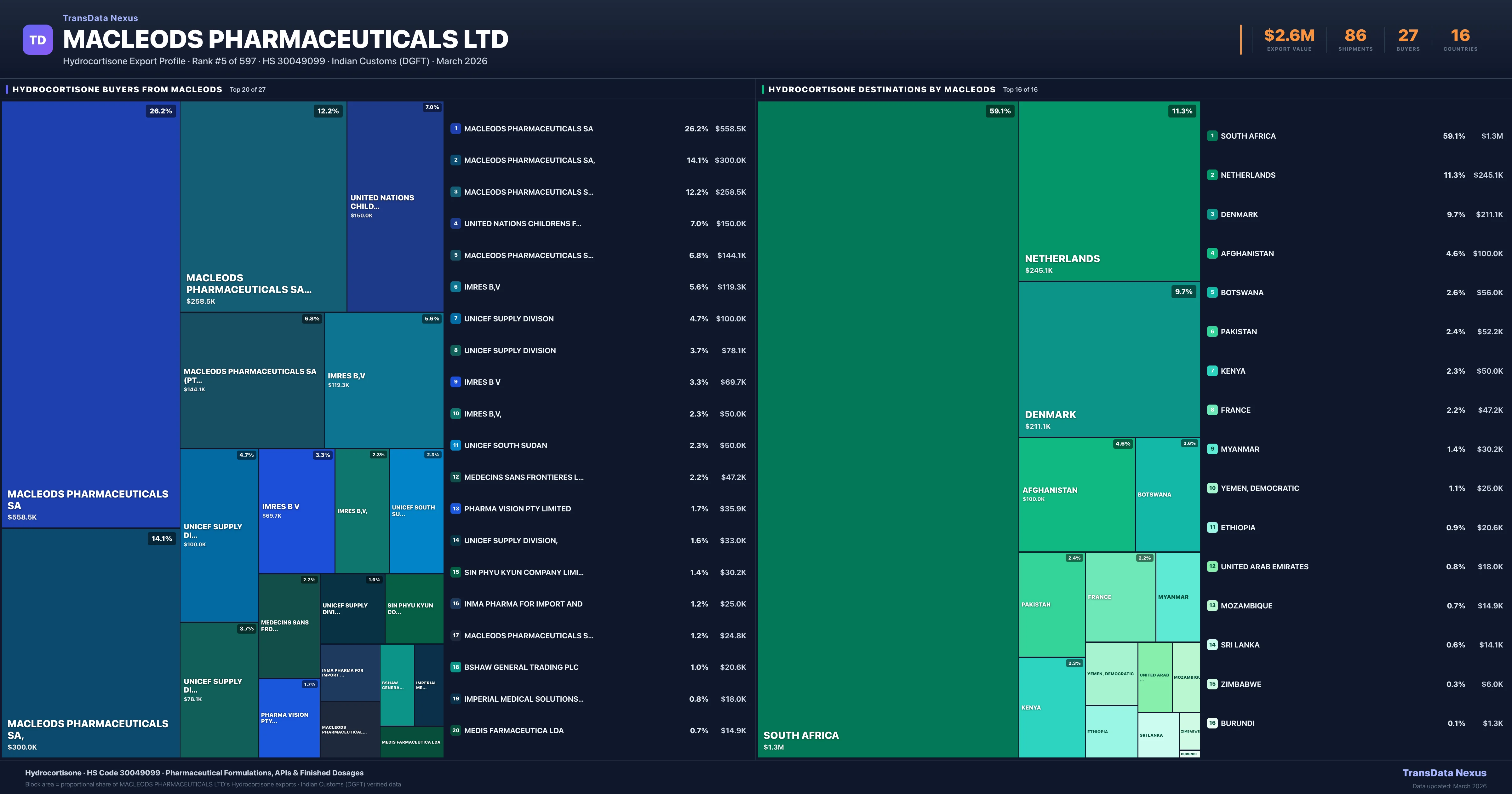 Macleods Pharmaceuticals Ltd — Hydrocortisone Export Profile: Buyers & Destinations