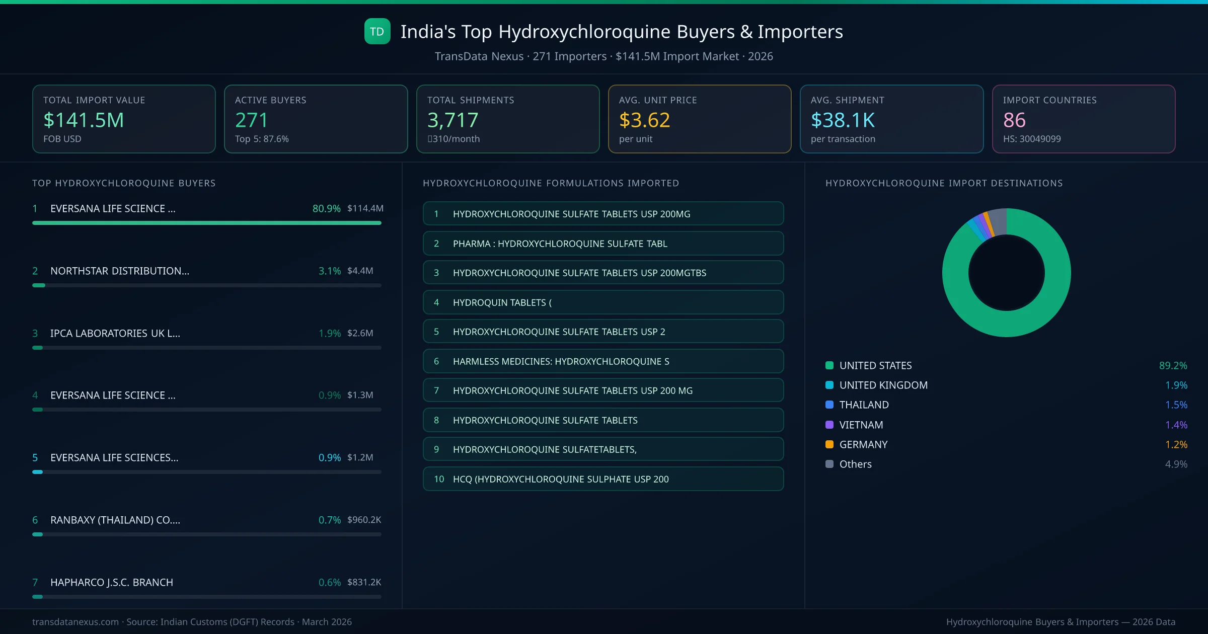 Who Buys Hydroxychloroquine from India โ 271 Importers Behind a $141.5M Market