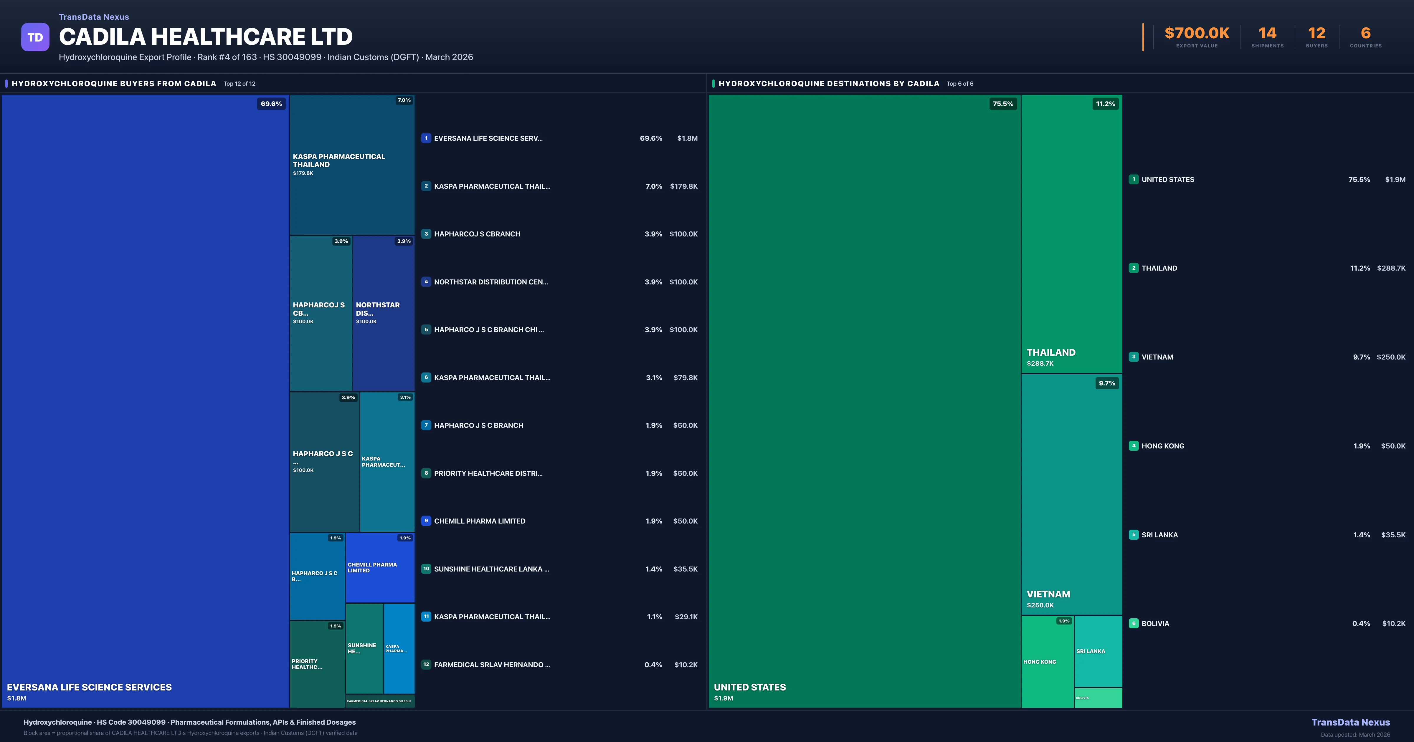 Cadila Healthcare Ltd — Hydroxychloroquine Export Profile: Buyers & Destinations