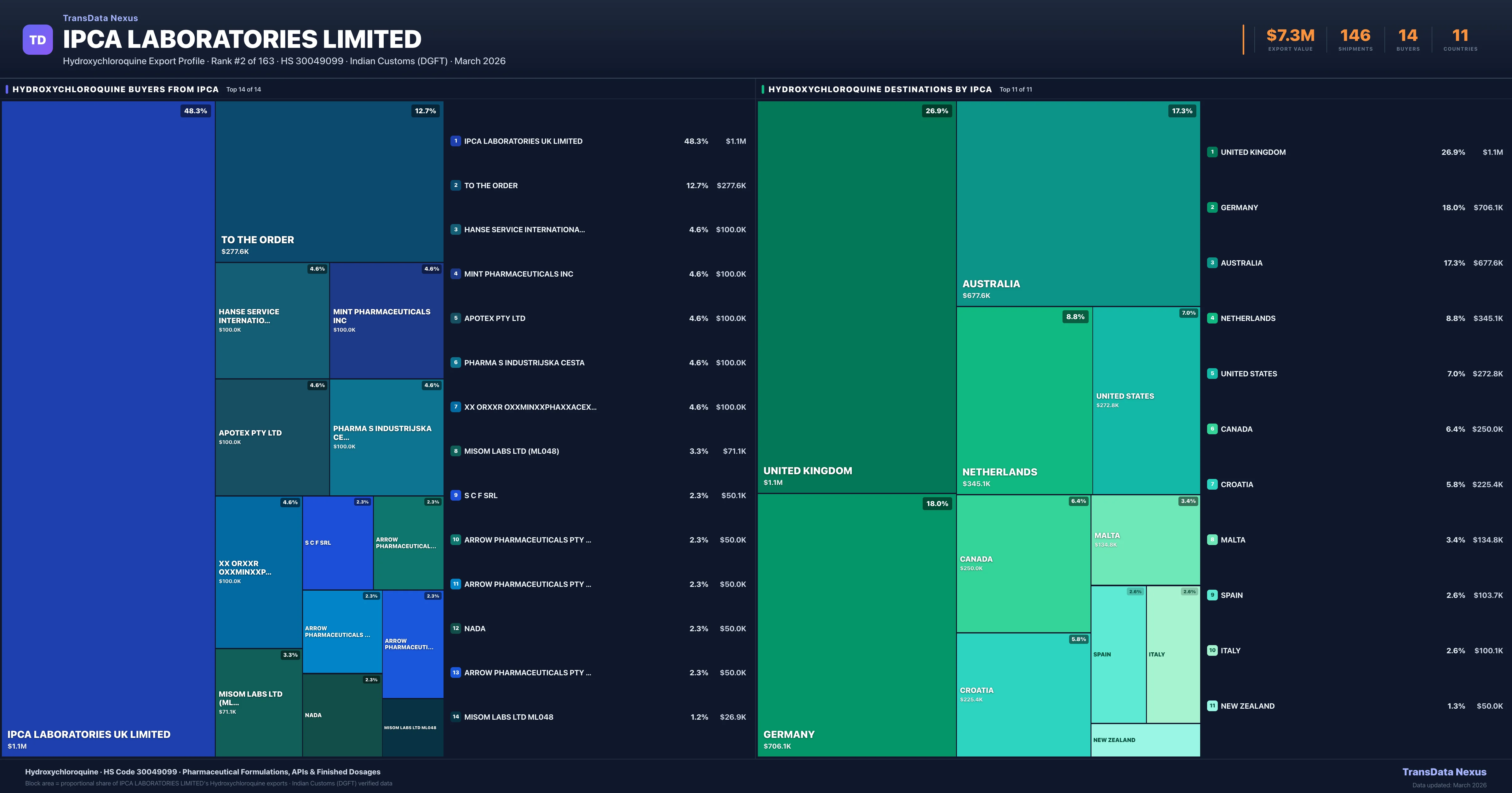 Ipca Laboratories Limited — Hydroxychloroquine Export Profile: Buyers & Destinations