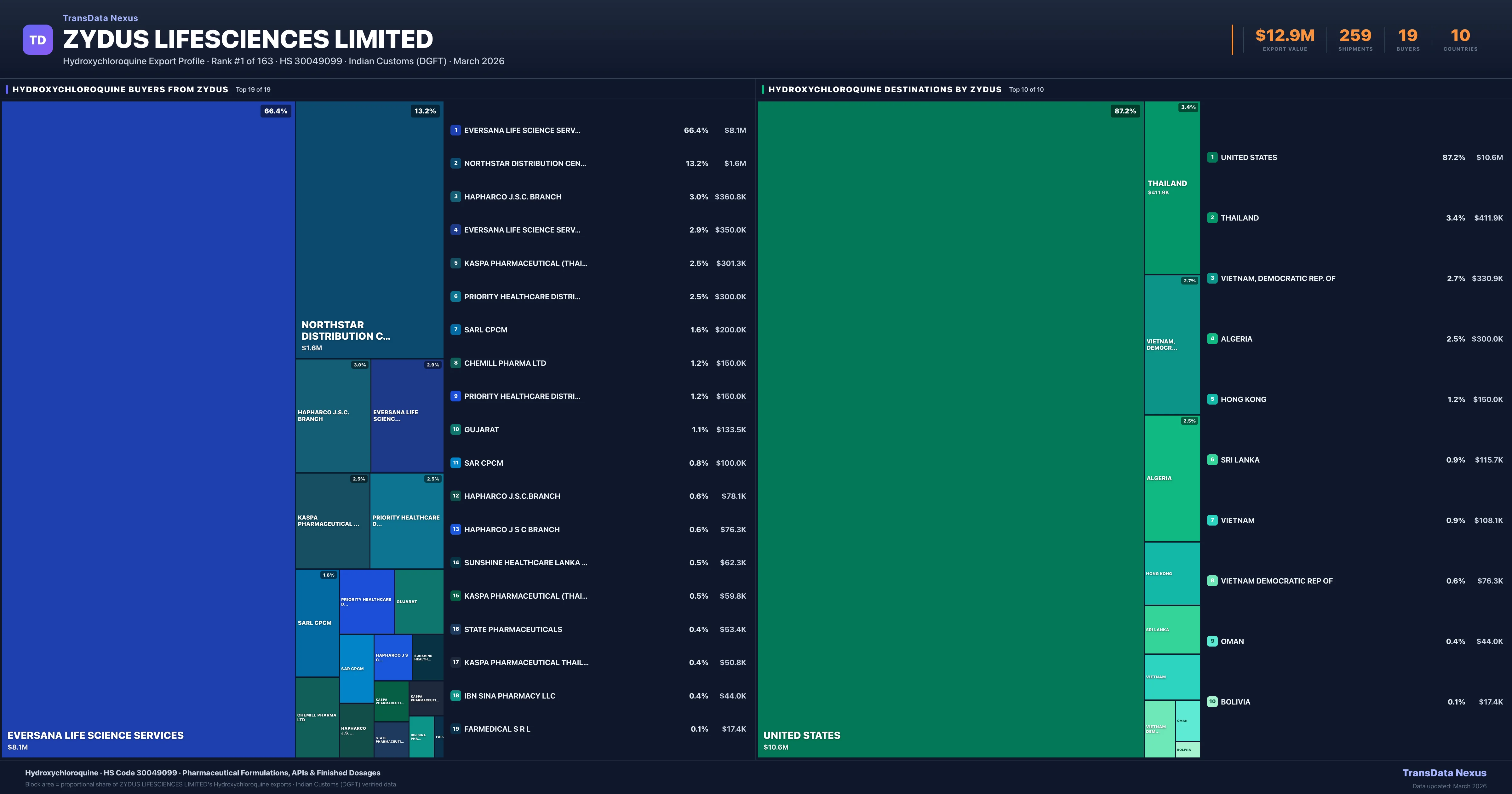Zydus Lifesciences Limited — Hydroxychloroquine Export Profile: Buyers & Destinations