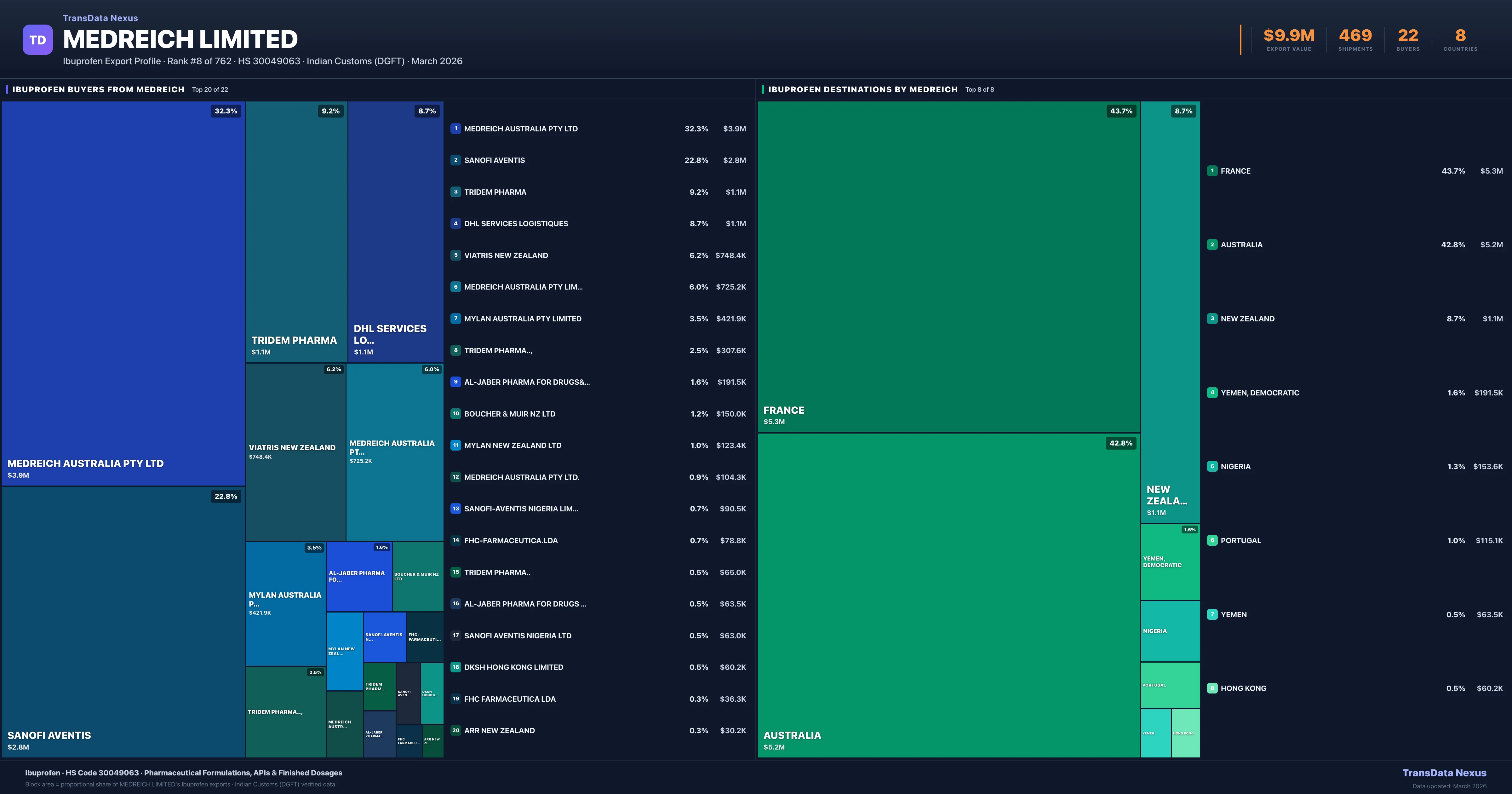 Medreich Limited — Ibuprofen Export Profile: Buyers & Destinations