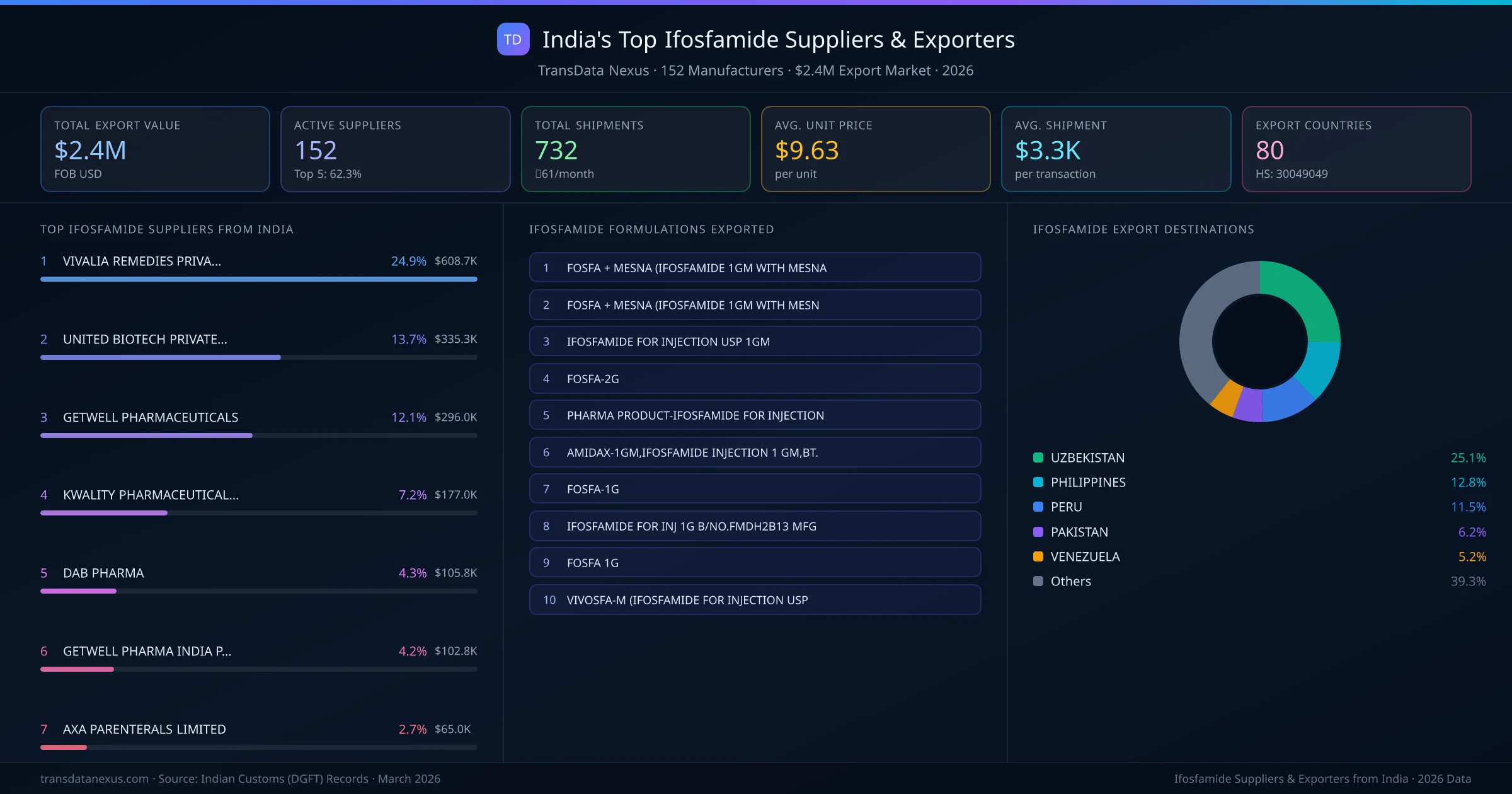 Who Exports Ifosfamide from India β 152 Suppliers Behind a $2.4M Market