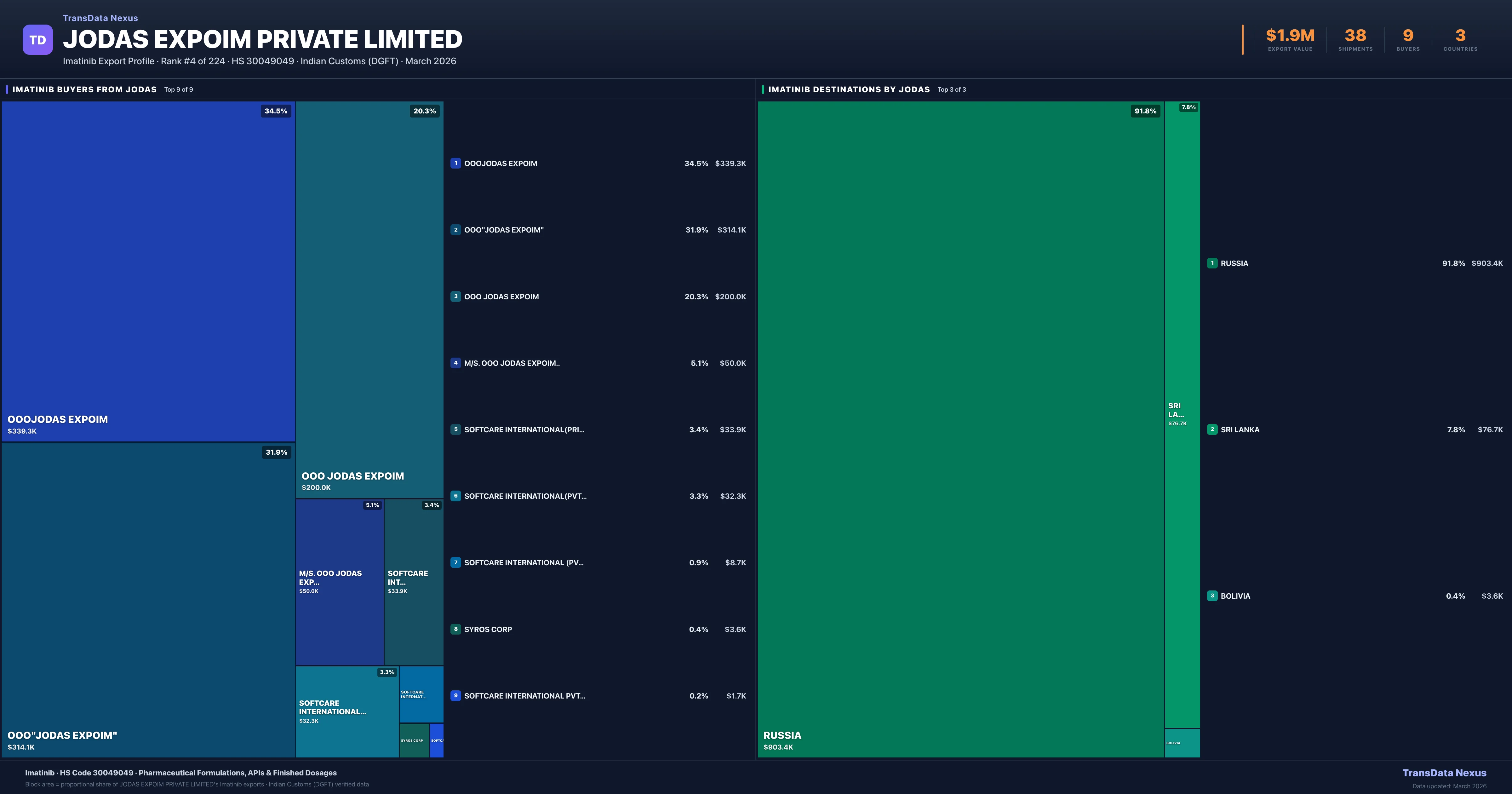 Jodas Expoim Private Limited — Imatinib Export Profile: Buyers & Destinations