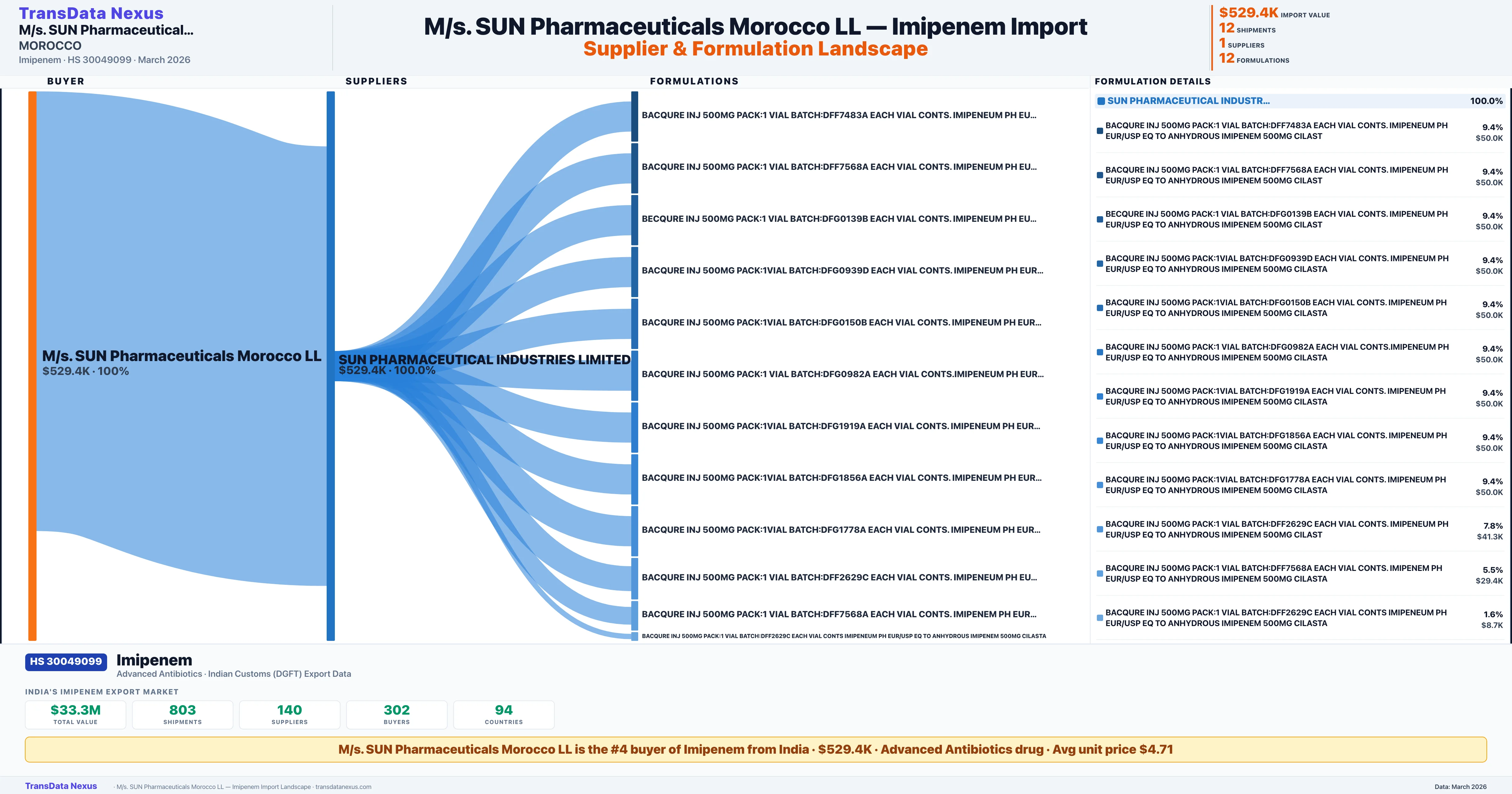 M/S. SUN PHARMACEUTICALS MOROCCO LL β Imipenem Import Profile: Suppliers, Formulations & Sources