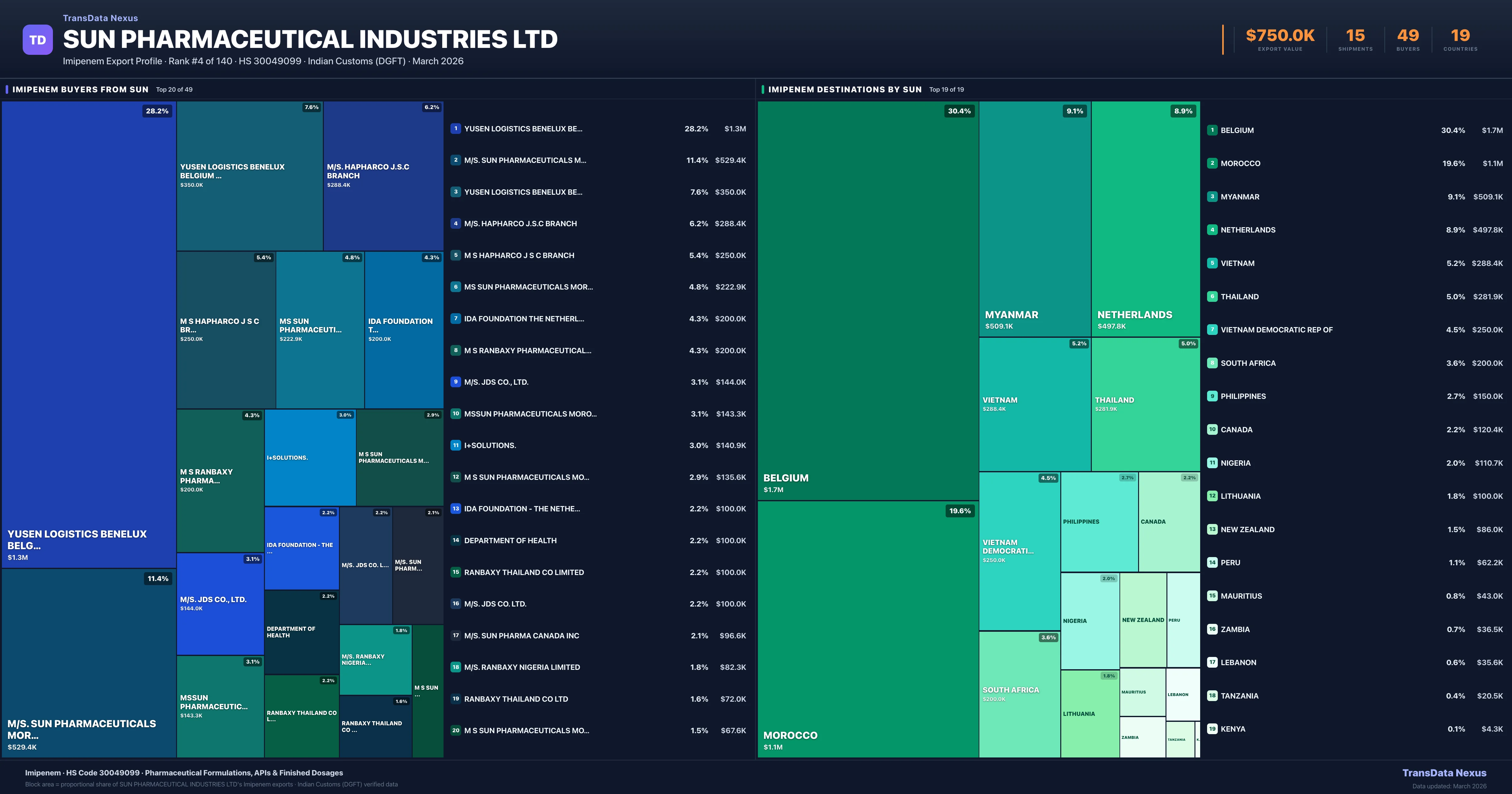 Sun Pharmaceutical Industries Ltd — Imipenem Export Profile: Buyers & Destinations