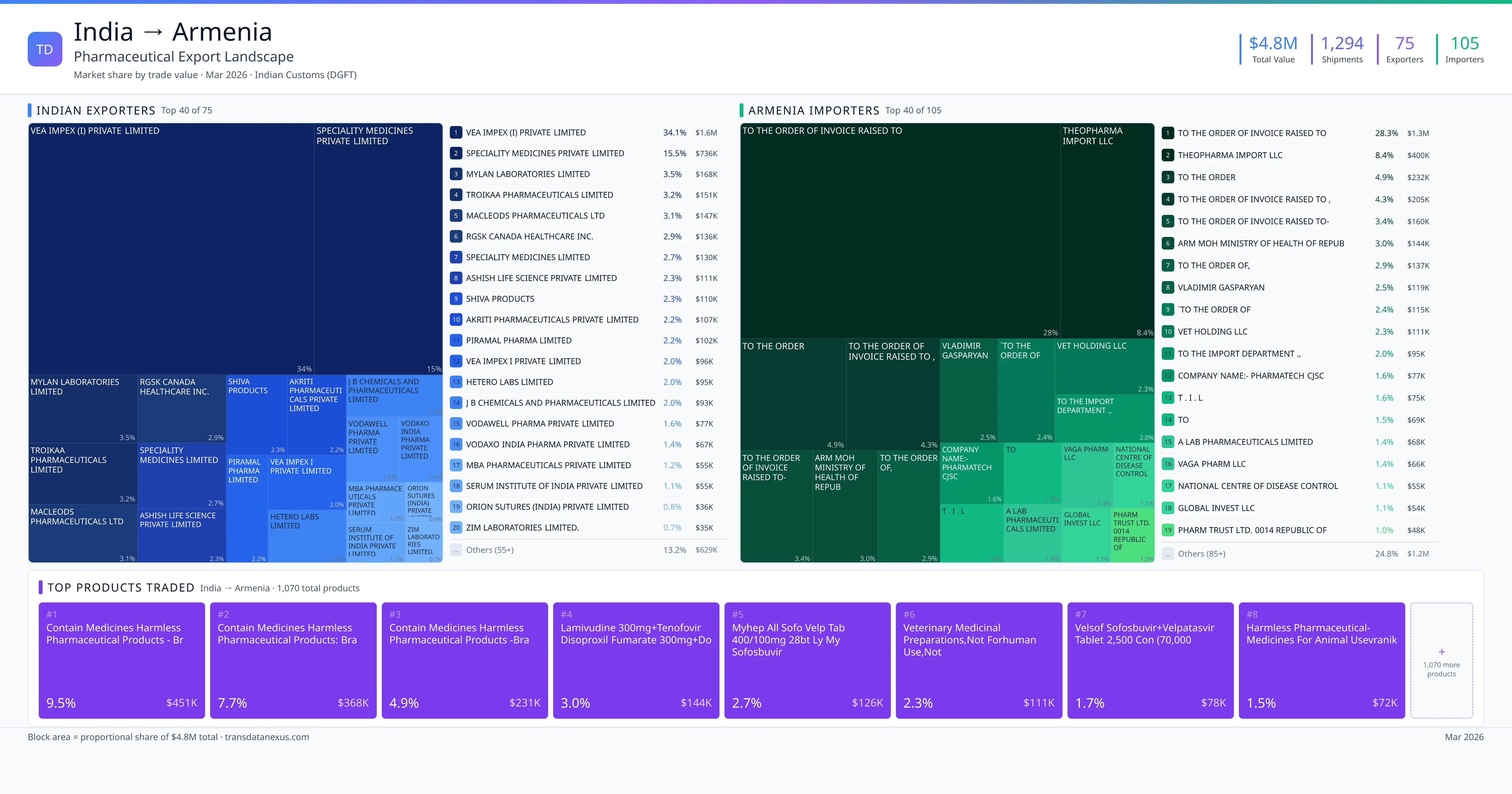 Armenia's pharmaceutical market is supplied by a diverse array of countries, including China, European Union (EU) manufacturers, domestic producers, and other emerging markets. In 2024, Armenia imported pharmaceutical products totaling approximately $238.51 million. While specific market share data for each supplying country is limited, available information highlights the significant presence of certain exporters.