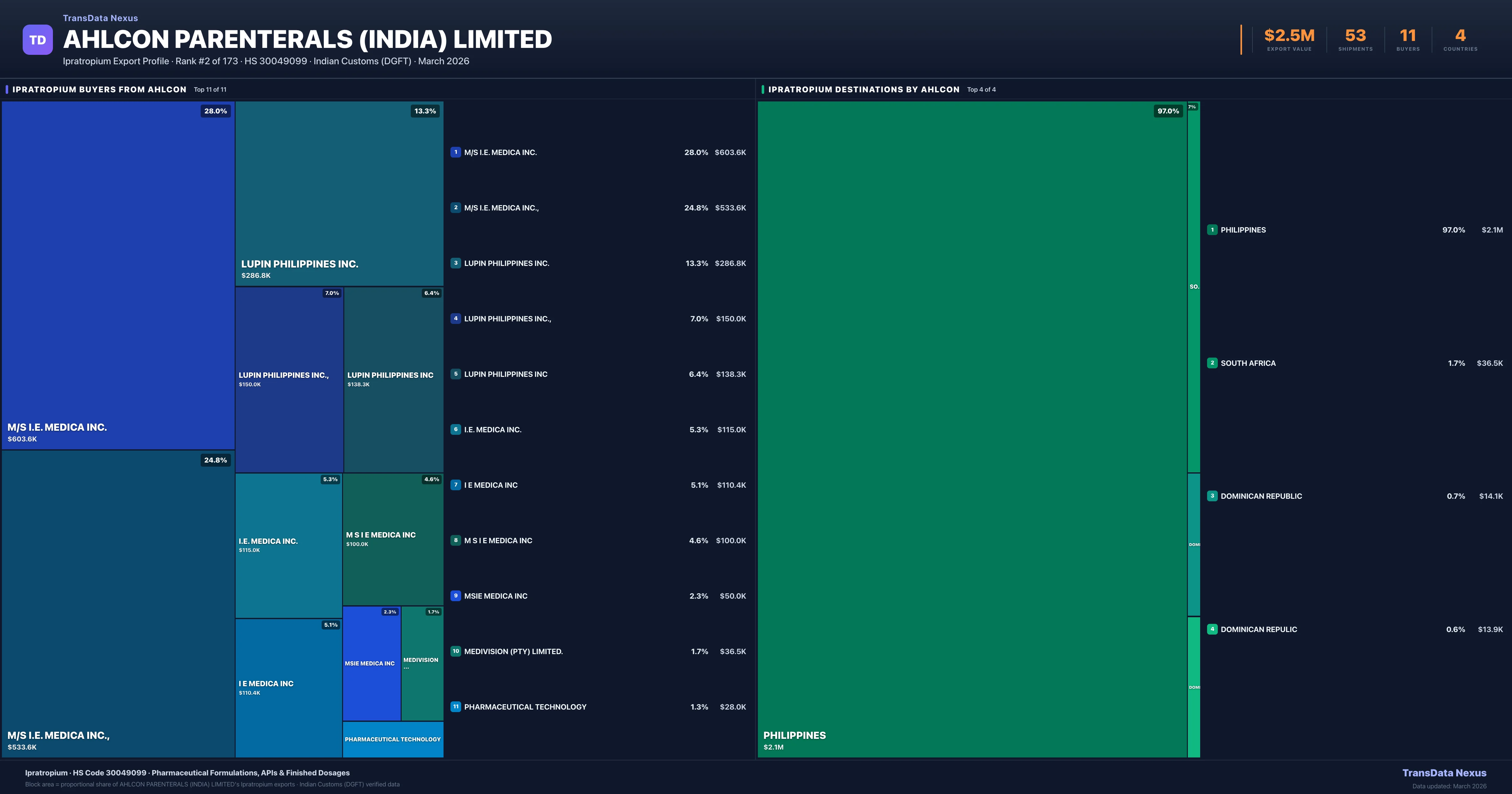 Ahlcon Parenterals (india) Limited — Ipratropium Export Profile: Buyers & Destinations