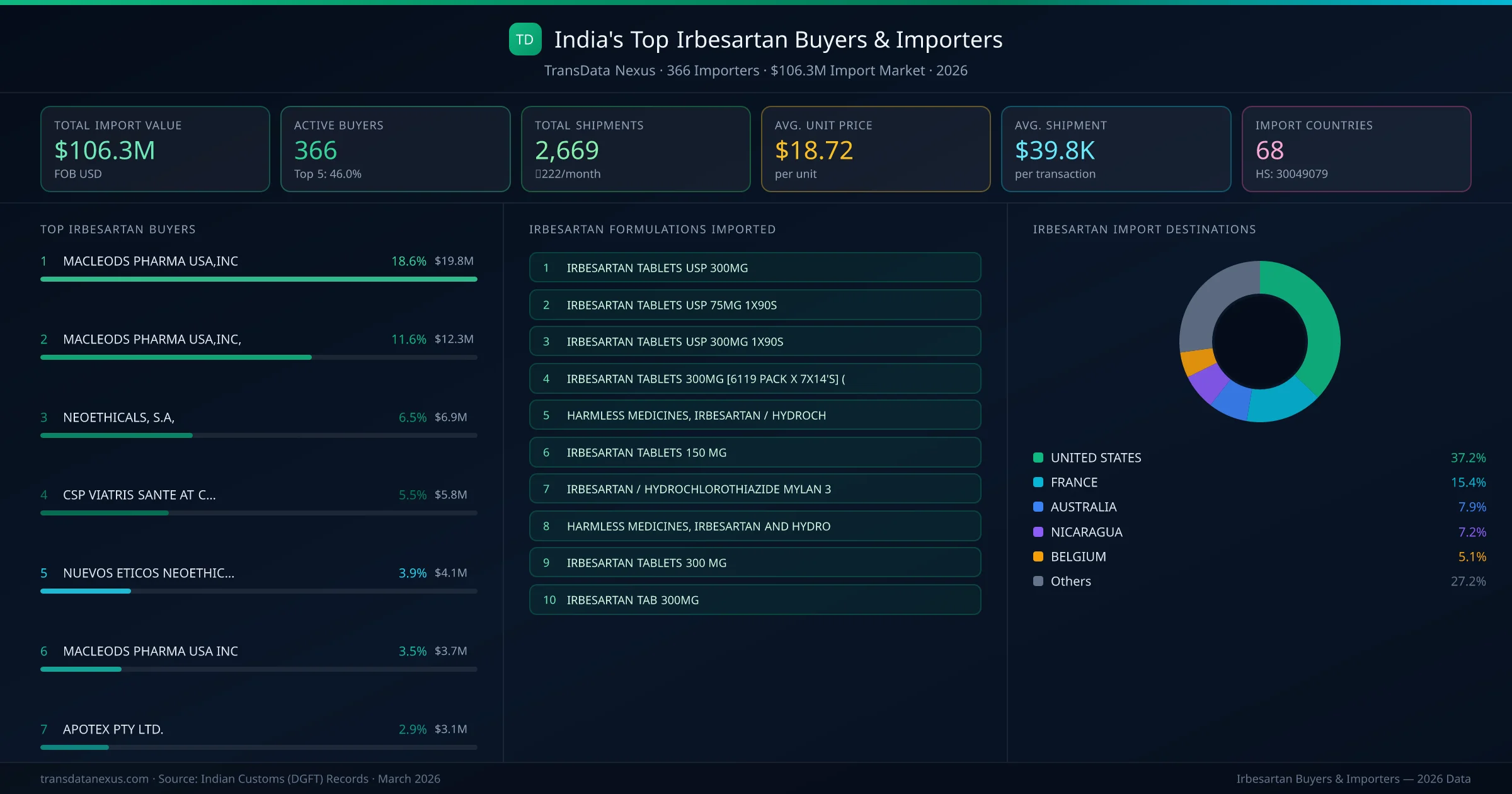 Who Buys Irbesartan from India — 366 Importers Behind a $106.3M Market