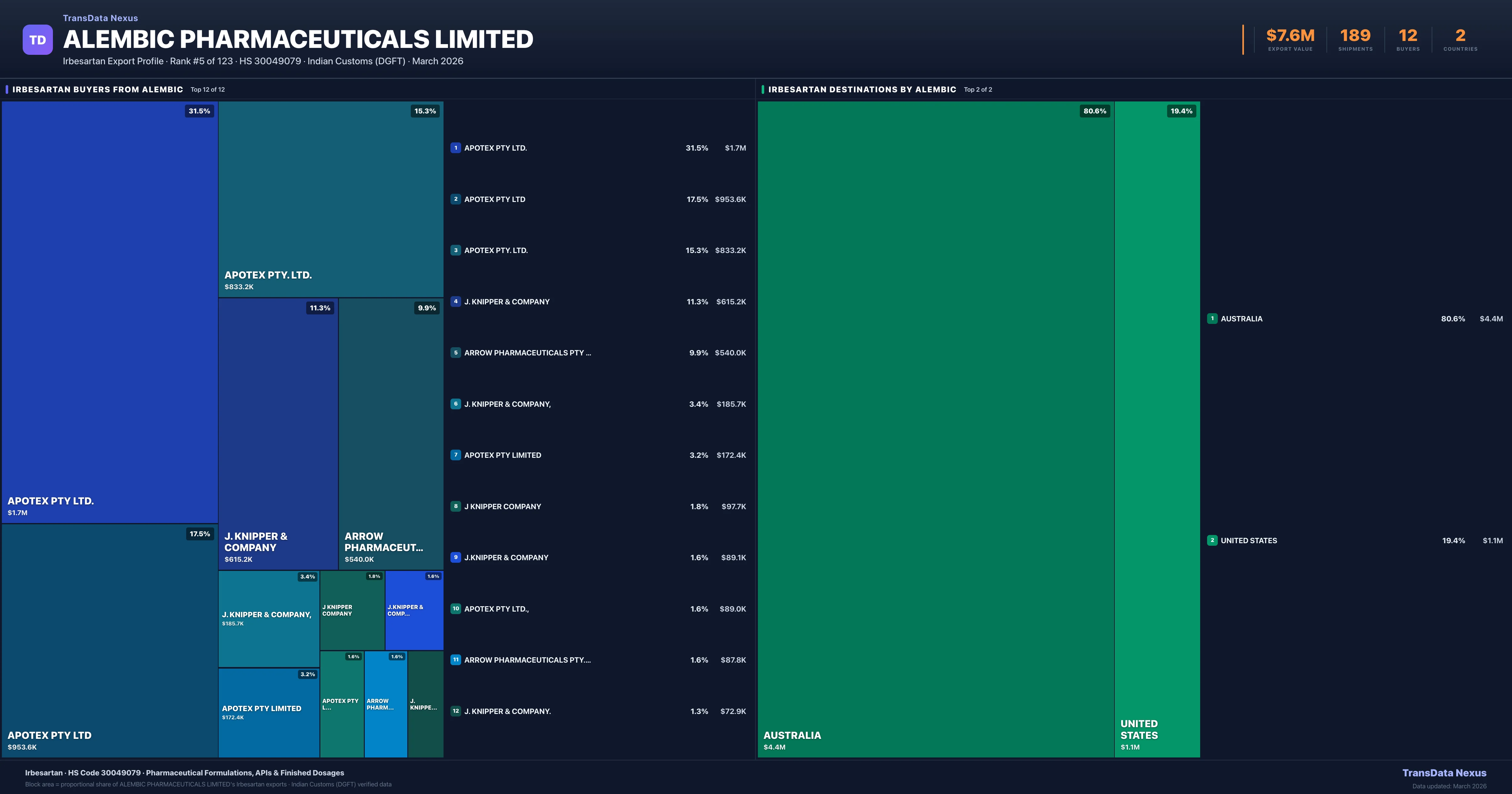 Alembic Pharmaceuticals Limited — Irbesartan Export Profile: Buyers & Destinations