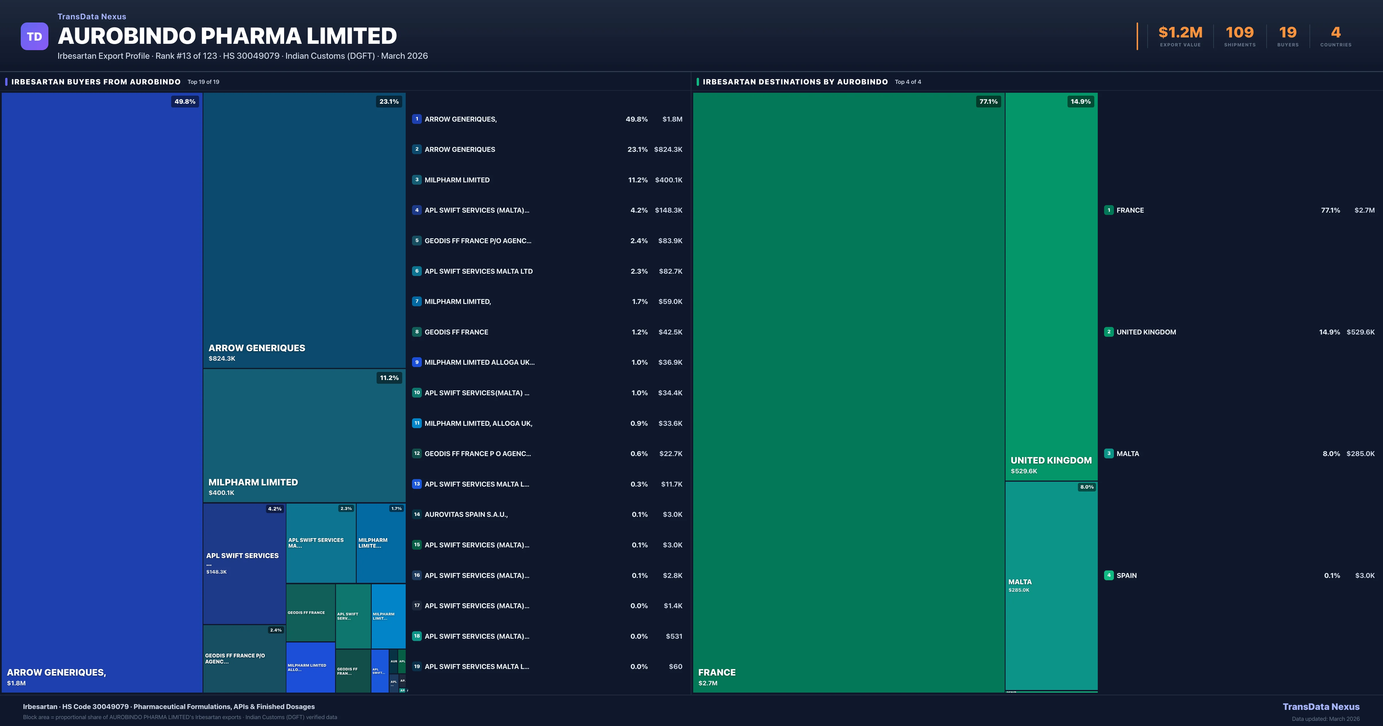 Aurobindo Pharma Limited — Irbesartan Export Profile: Buyers & Destinations
