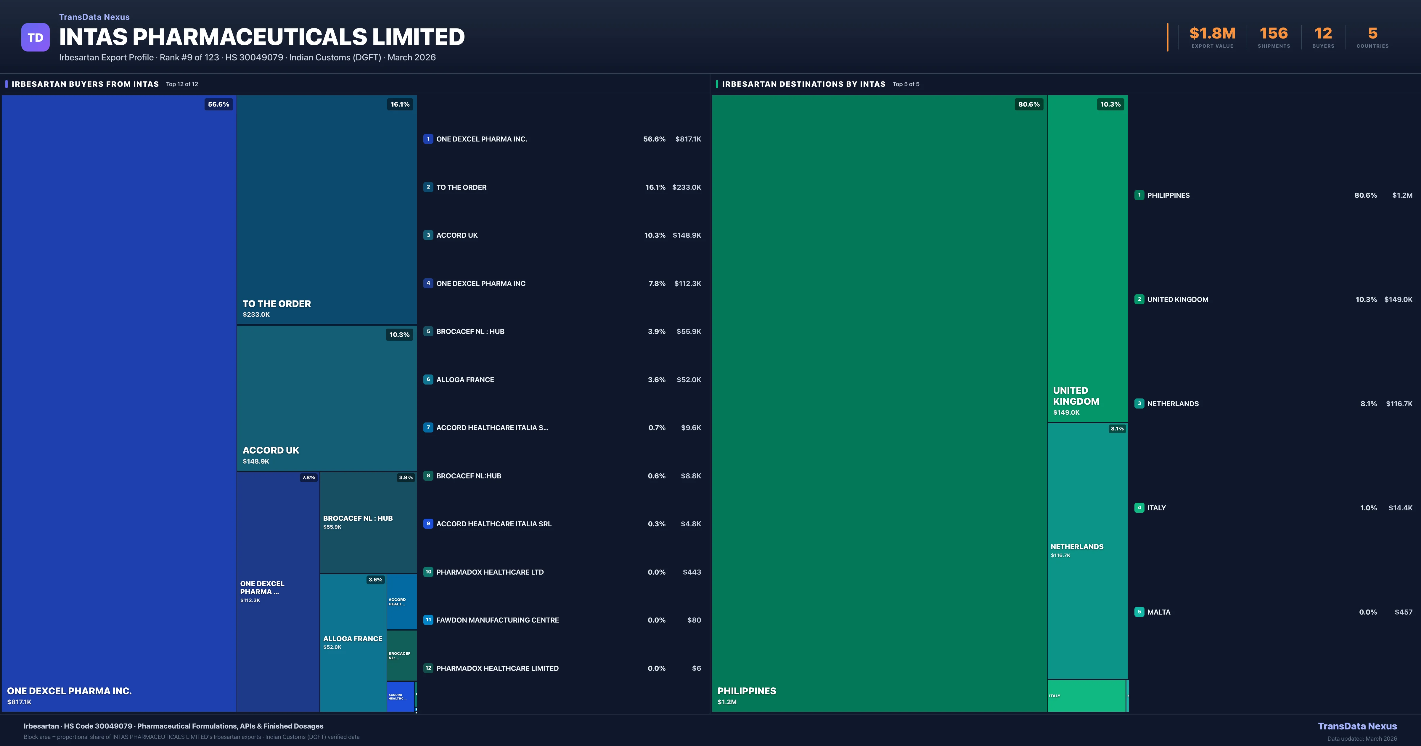 Intas Pharmaceuticals Limited — Irbesartan Export Profile: Buyers & Destinations