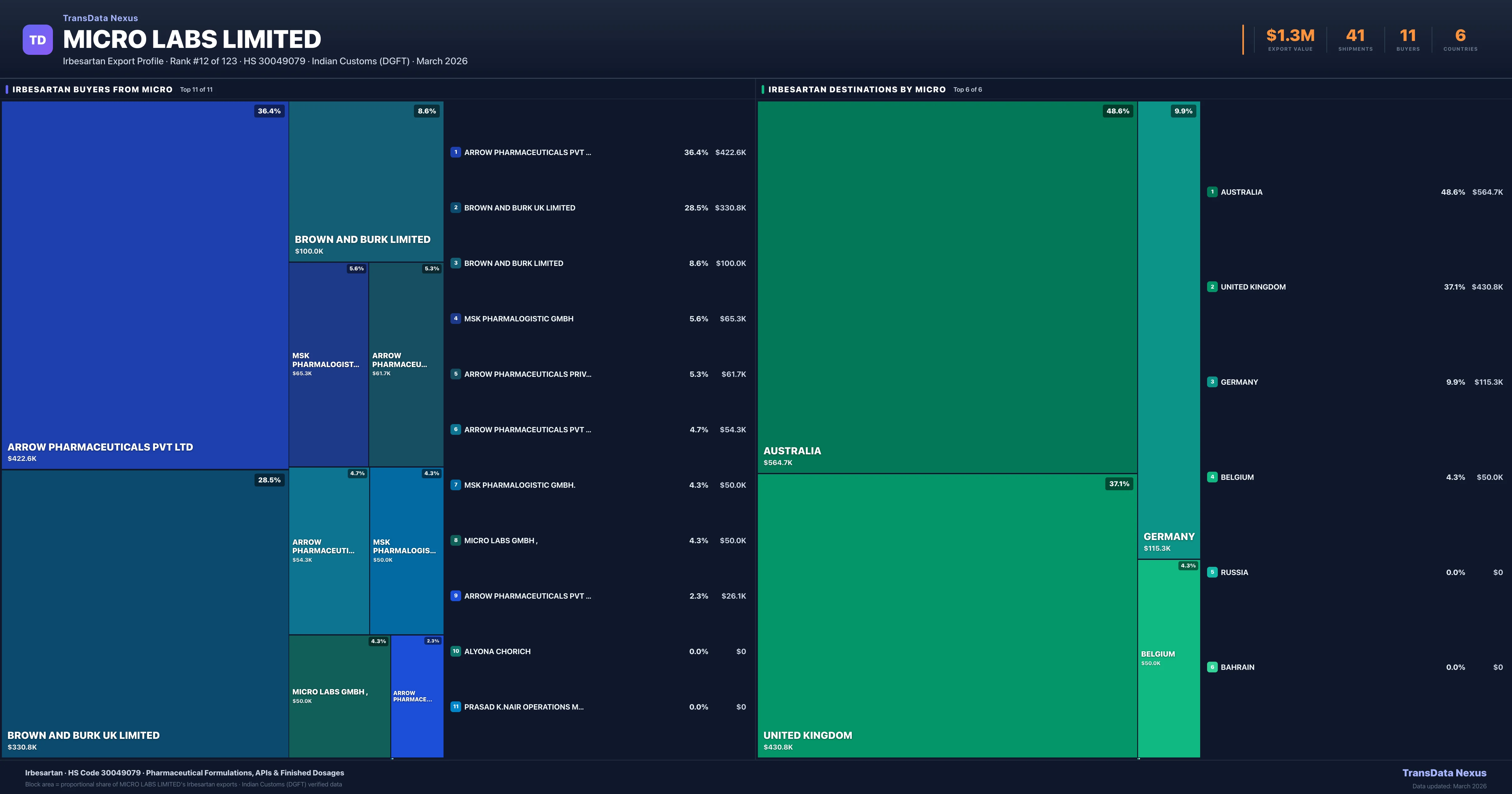 Micro Labs Limited — Irbesartan Export Profile: Buyers & Destinations