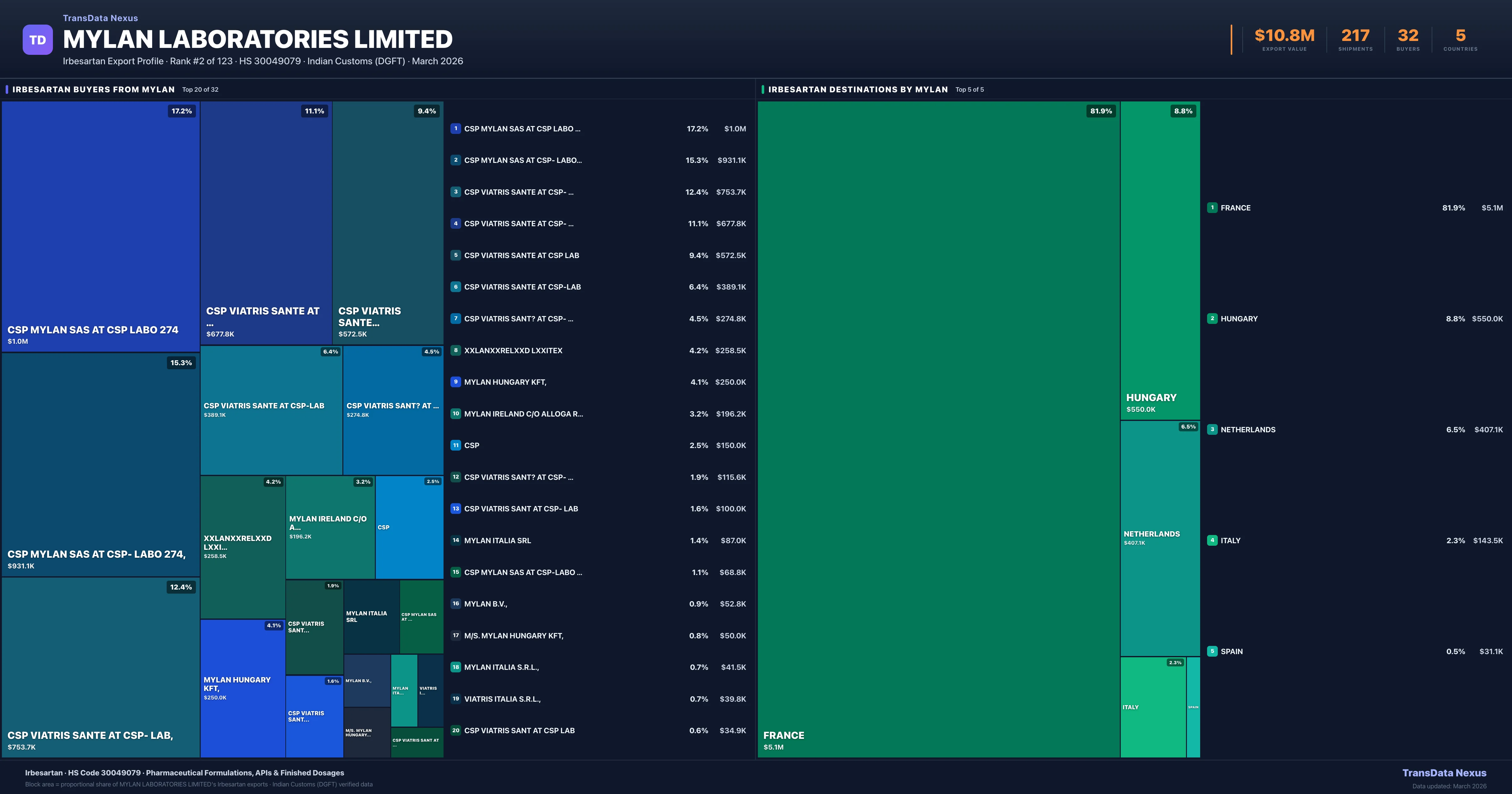 Mylan Laboratories Limited — Irbesartan Export Profile: Buyers & Destinations