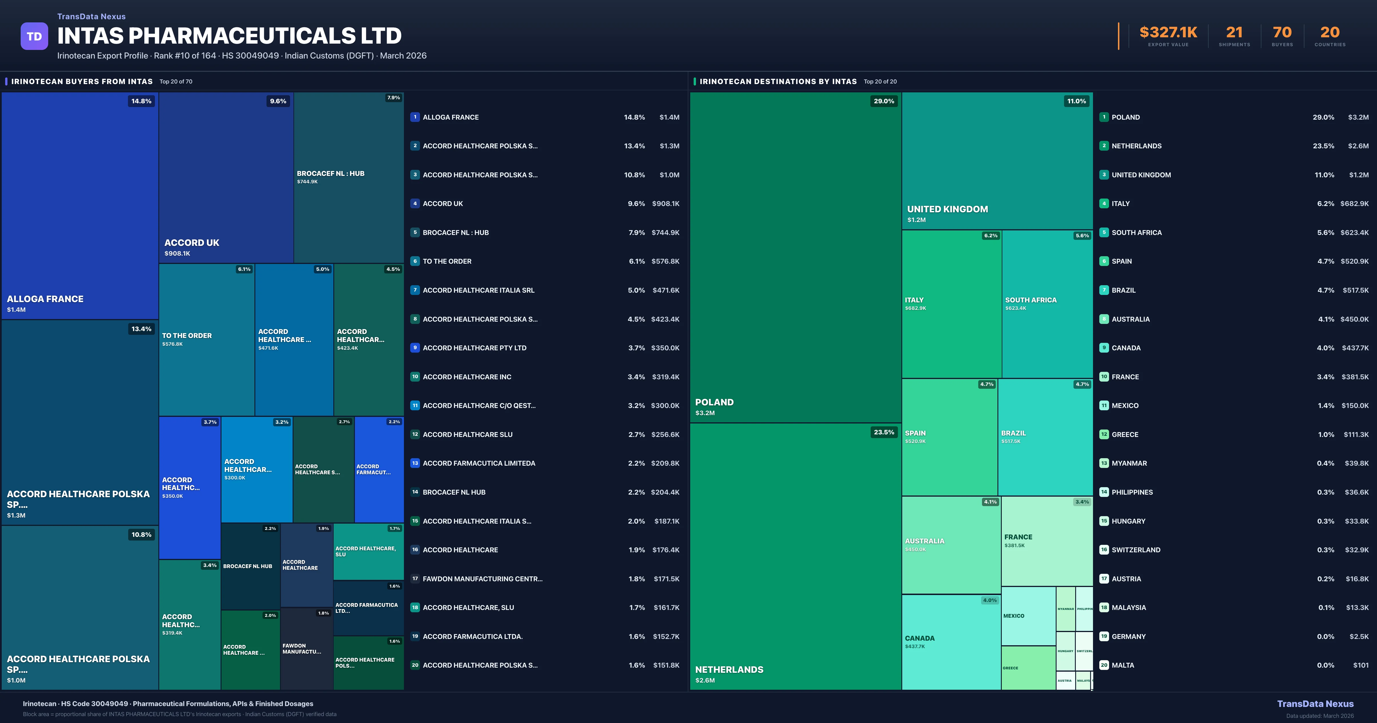 Intas Pharmaceuticals Ltd β Irinotecan Export Profile: Buyers & Destinations