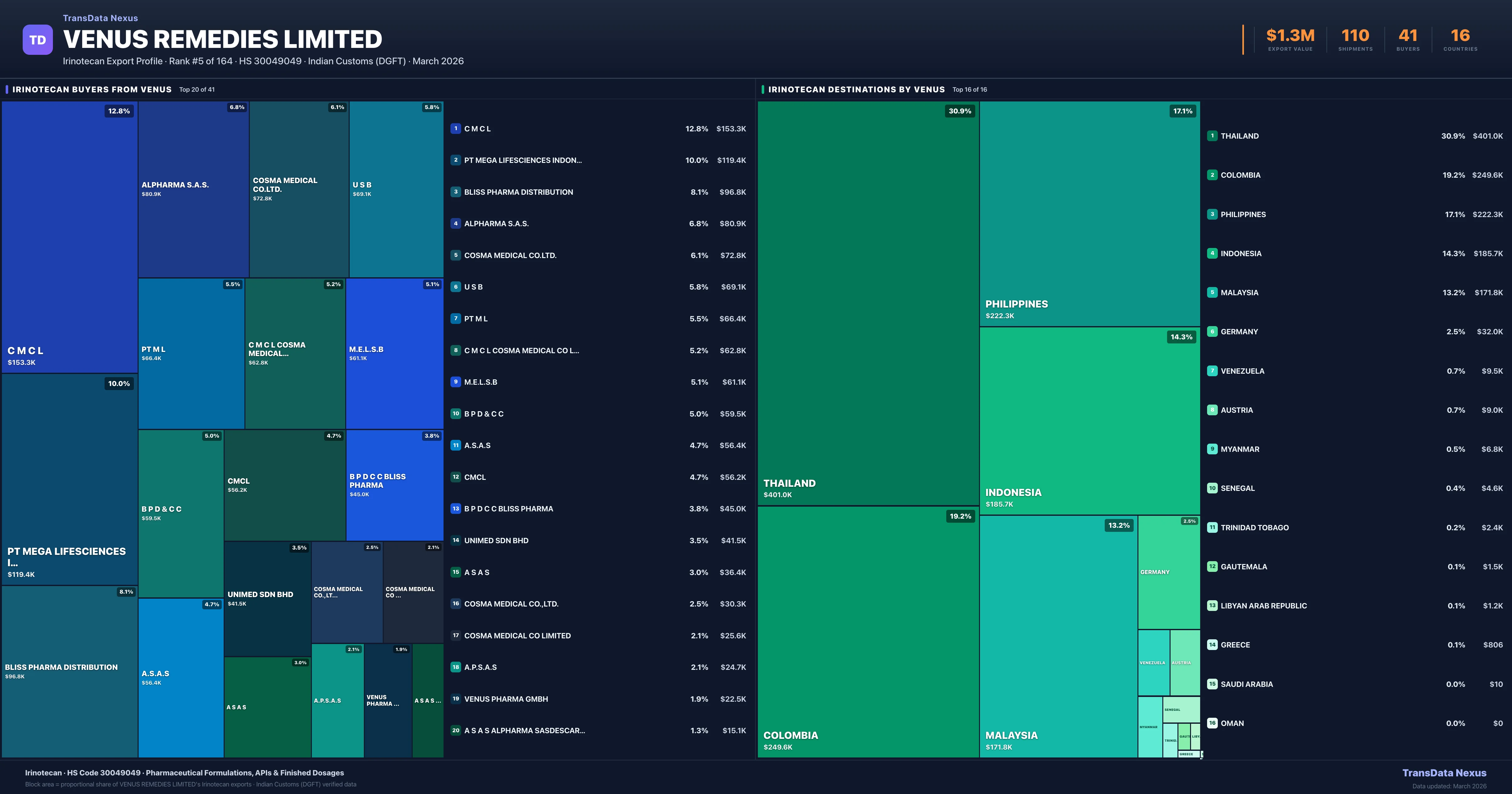 Venus Remedies Limited β Irinotecan Export Profile: Buyers & Destinations