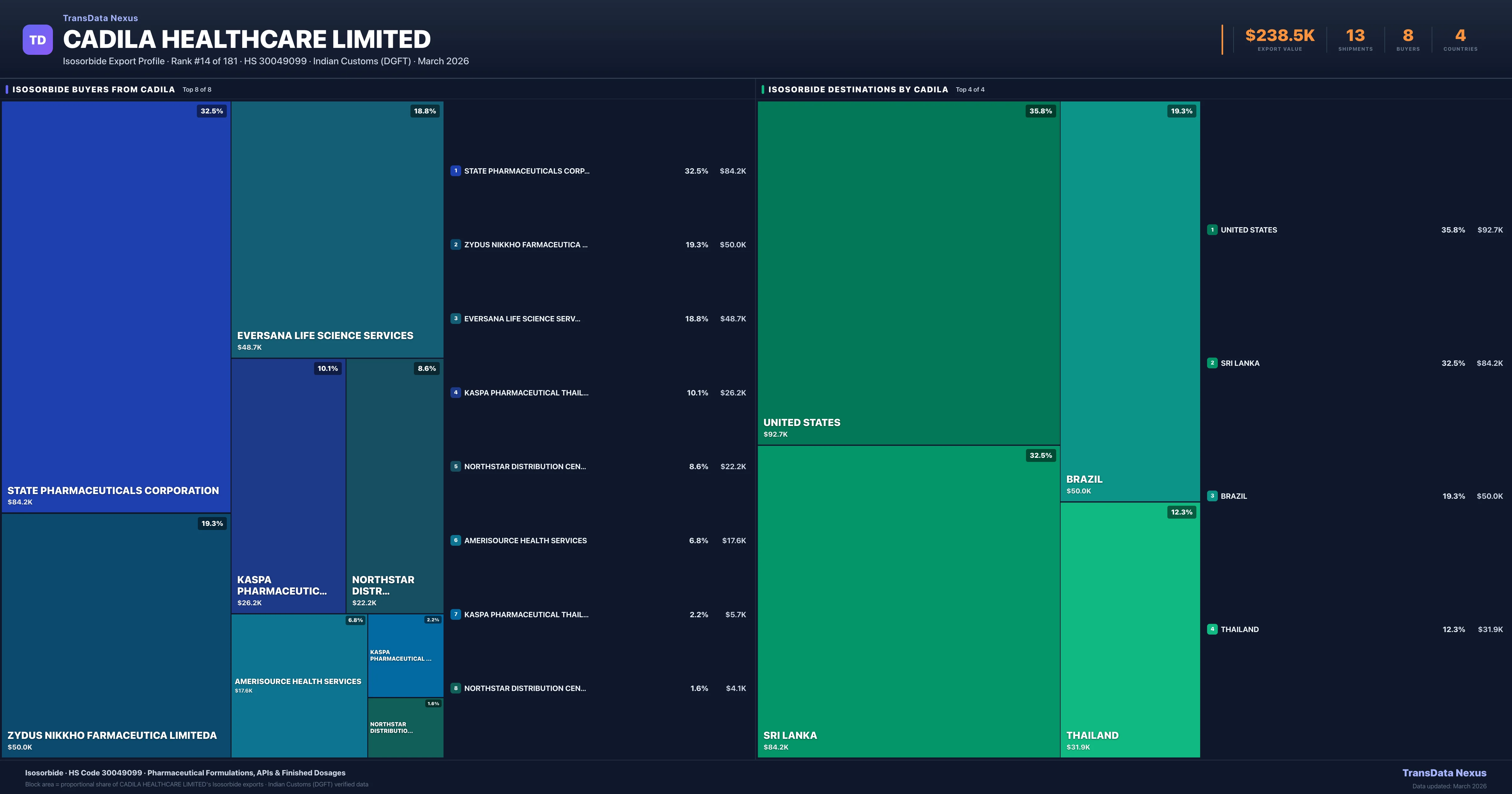 Cadila Healthcare Limited — Isosorbide Export Profile: Buyers & Destinations
