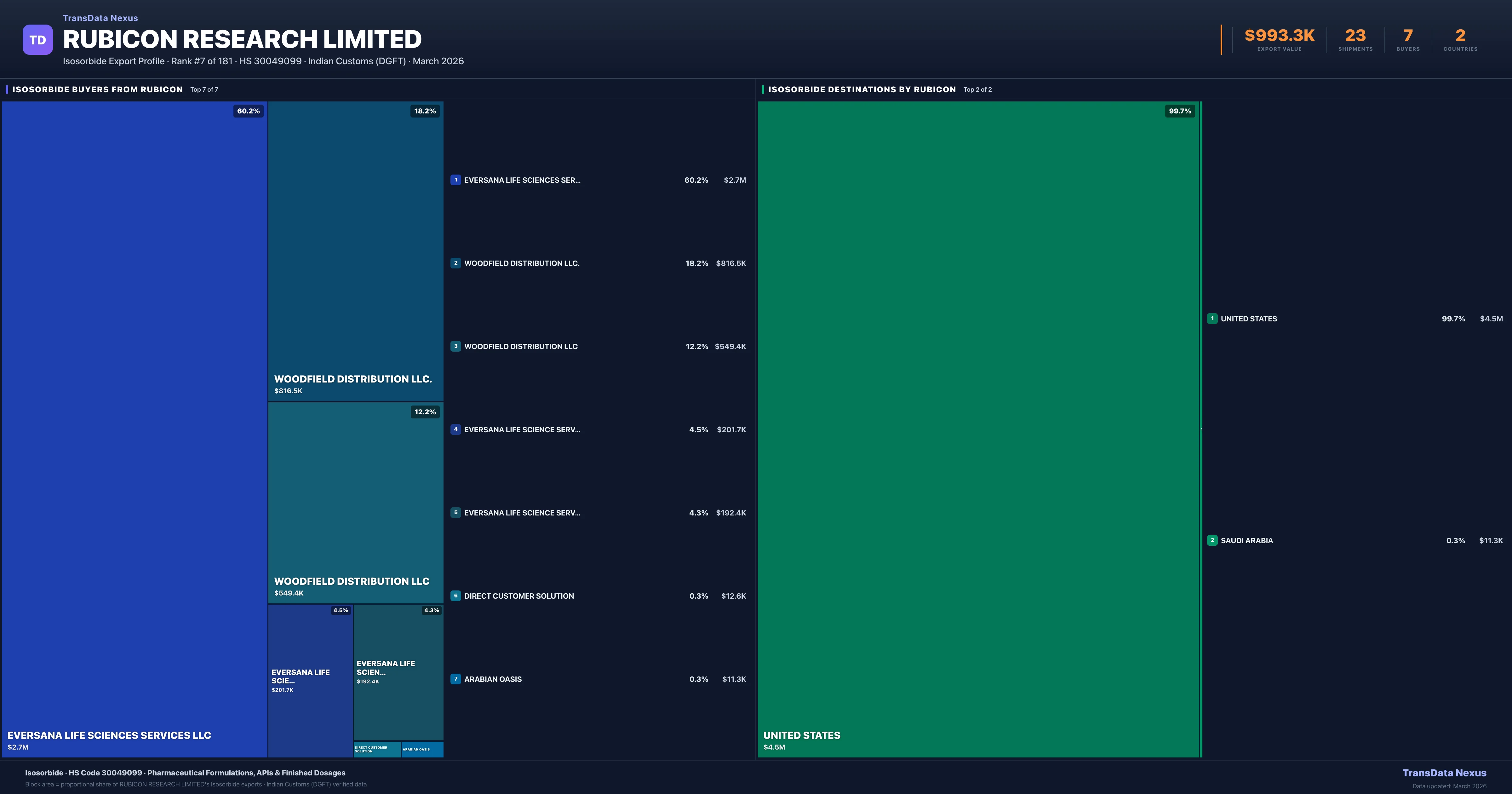 Rubicon Research Limited — Isosorbide Export Profile: Buyers & Destinations