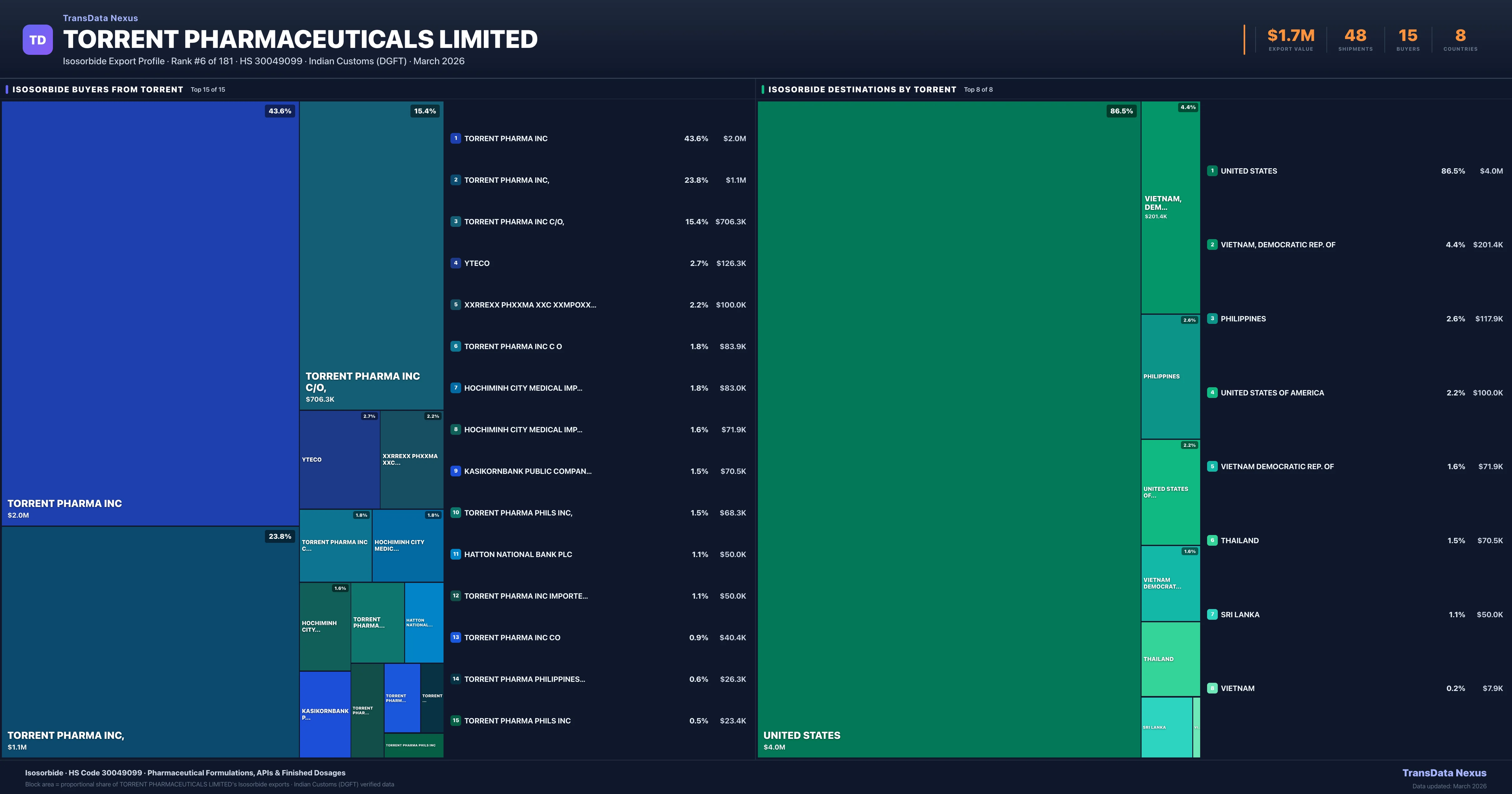 Torrent Pharmaceuticals Limited — Isosorbide Export Profile: Buyers & Destinations