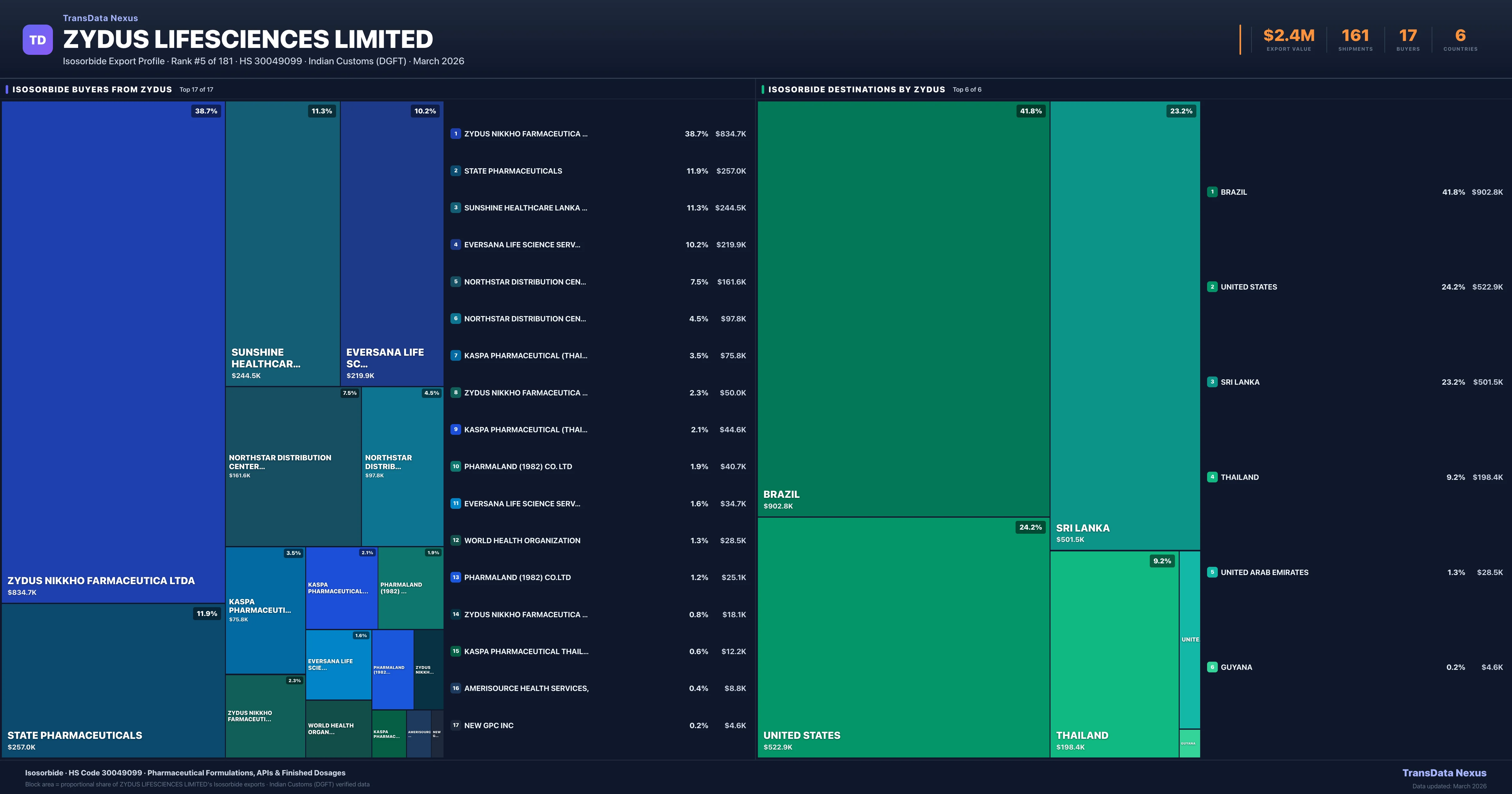 Zydus Lifesciences Limited — Isosorbide Export Profile: Buyers & Destinations