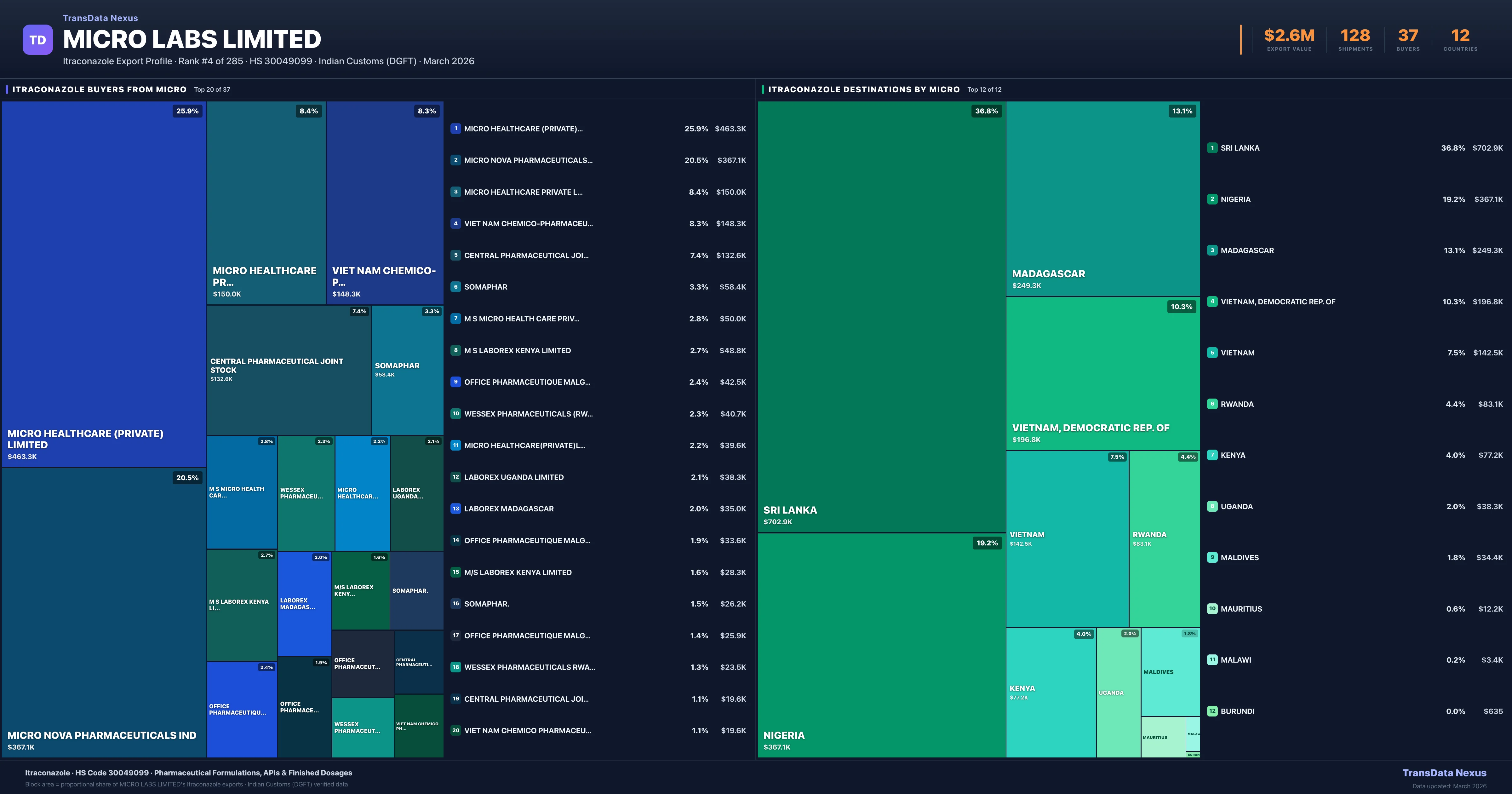 Micro Labs Limited — Itraconazole Export Profile: Buyers & Destinations