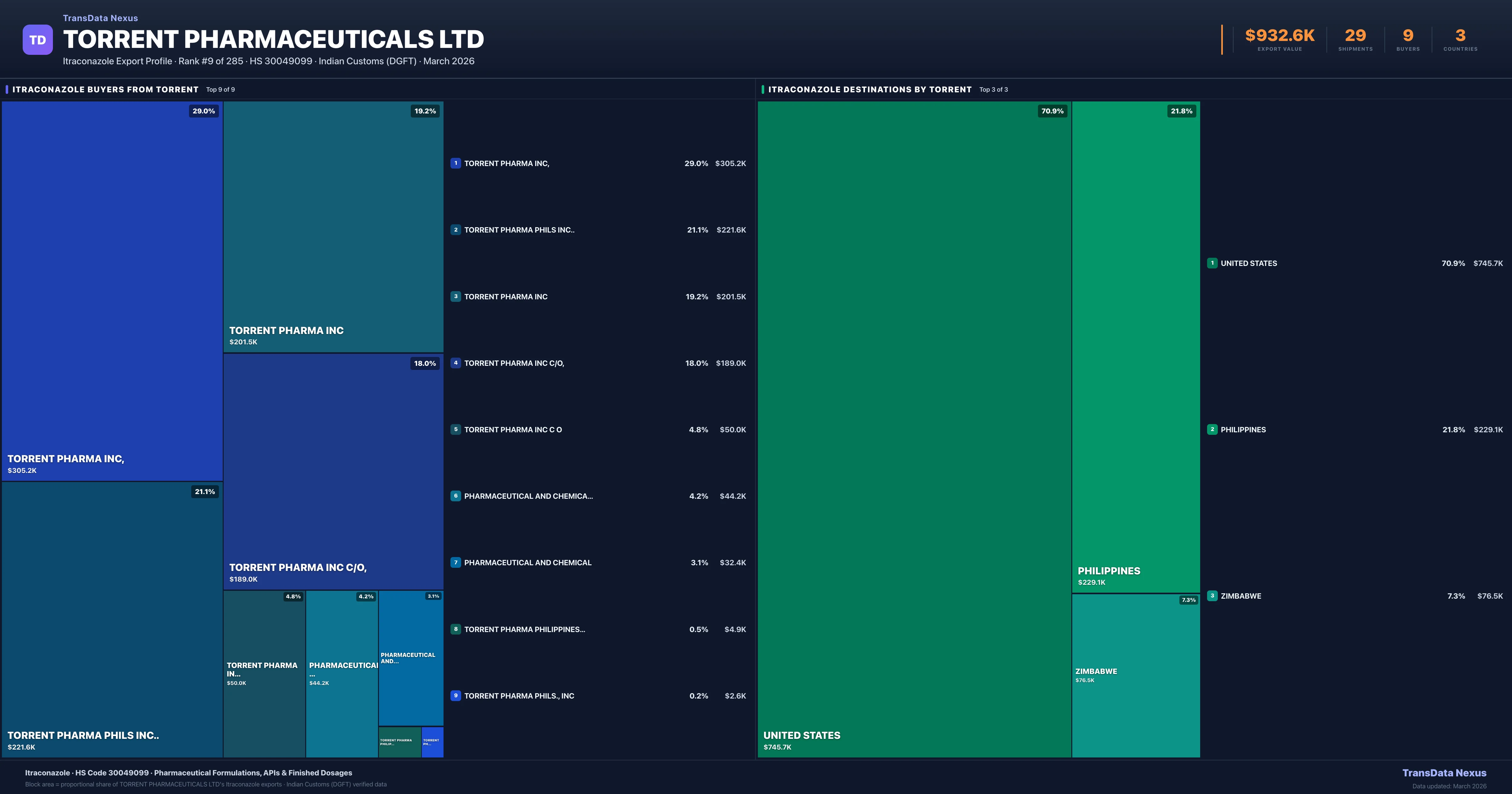 Torrent Pharmaceuticals Ltd — Itraconazole Export Profile: Buyers & Destinations