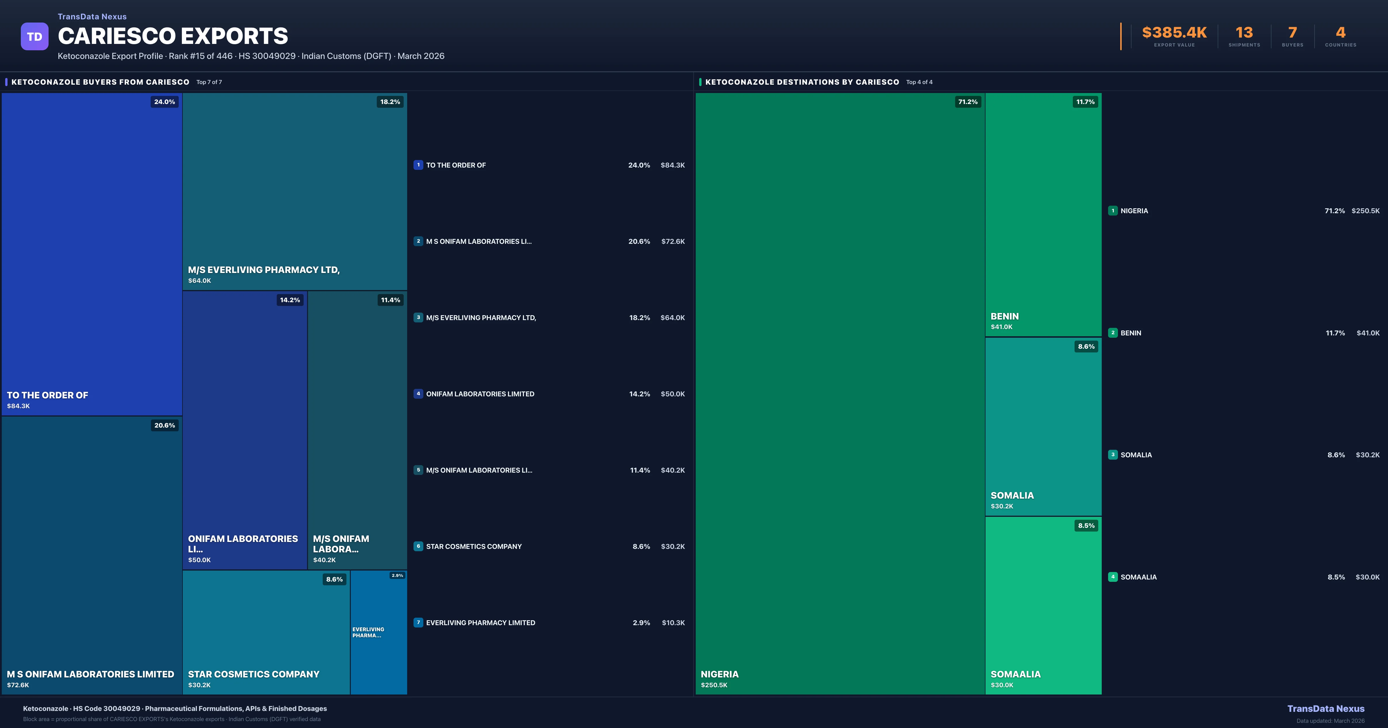 Cariesco Exports — Ketoconazole Export Profile: Buyers & Destinations