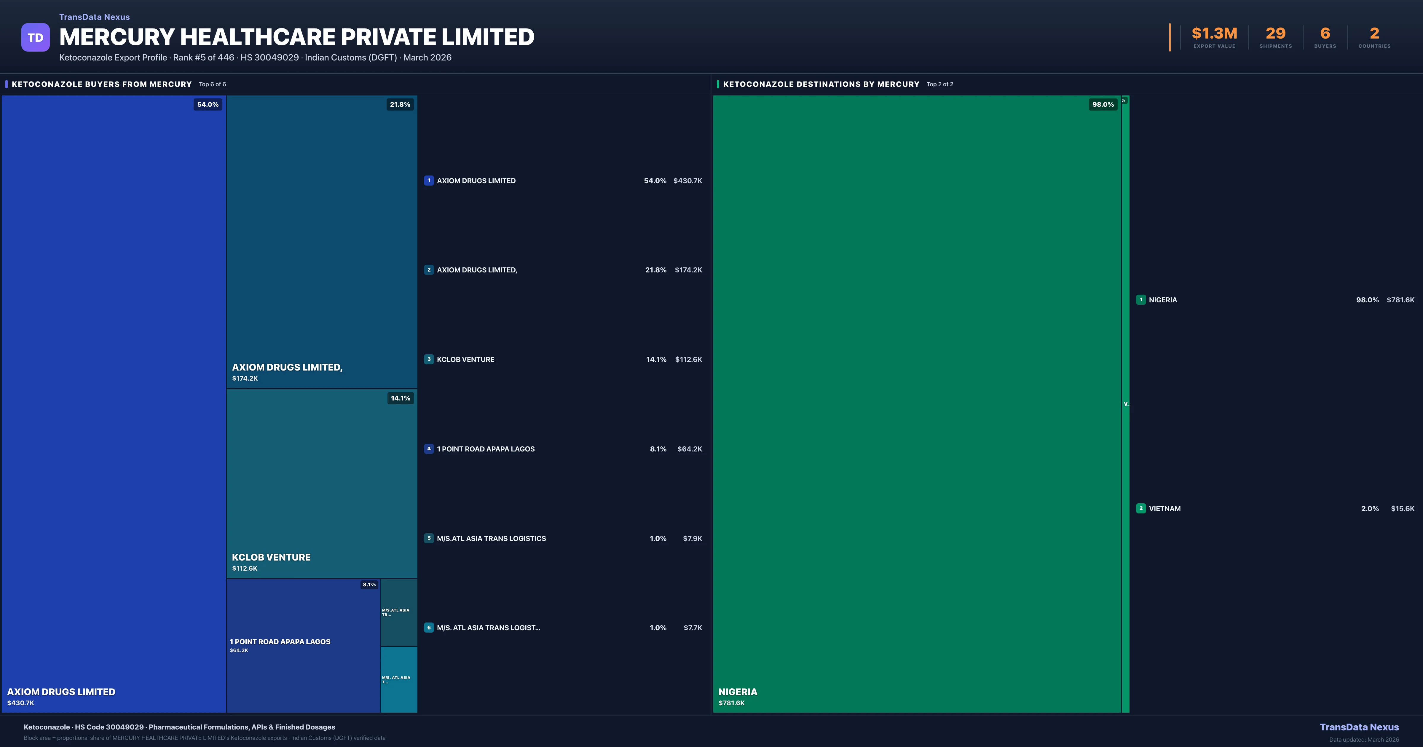 Mercury Healthcare Private Limited β Ketoconazole Export Profile: Buyers & Destinations