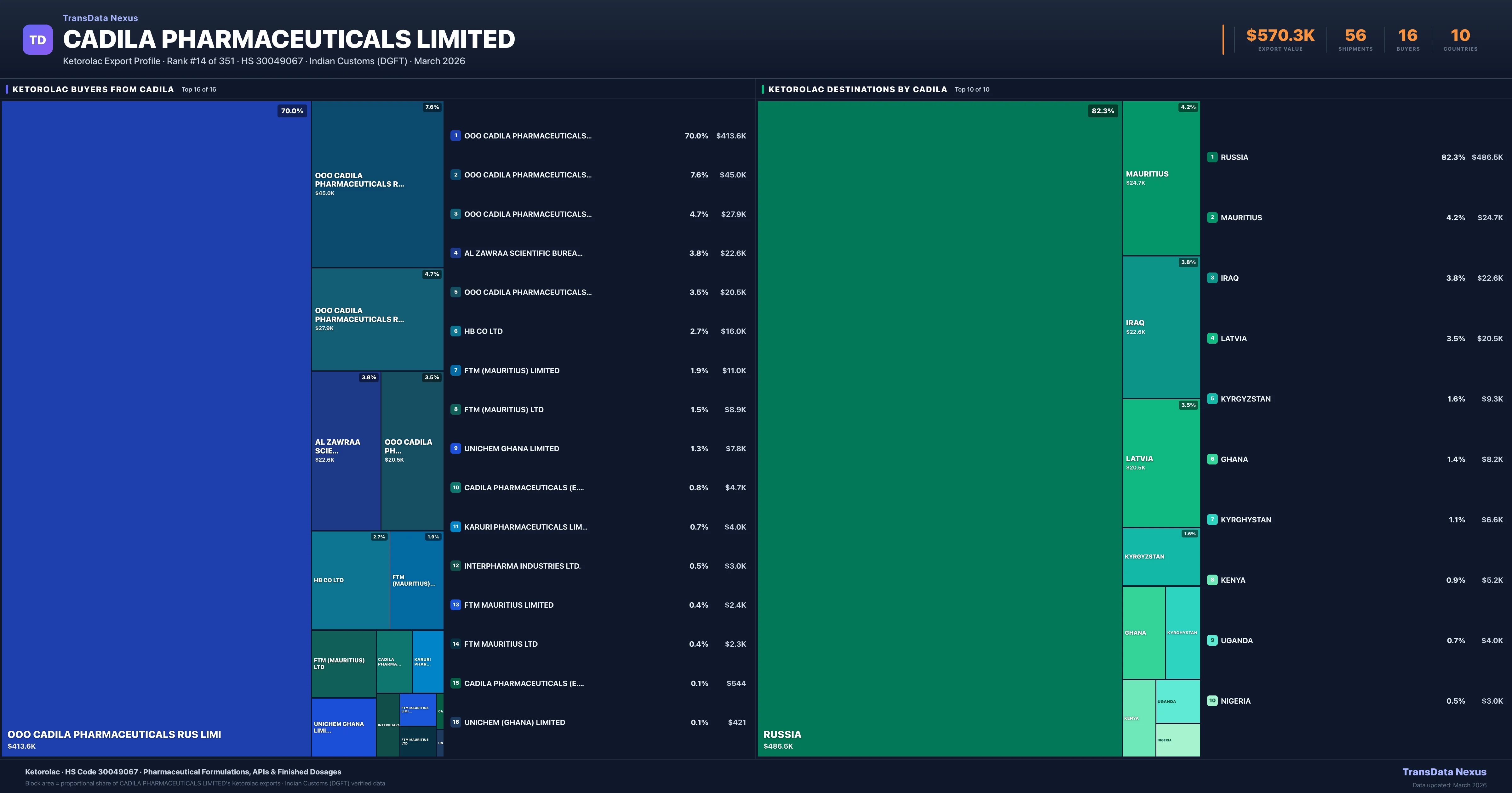 Cadila Pharmaceuticals Limited — Ketorolac Export Profile: Buyers & Destinations