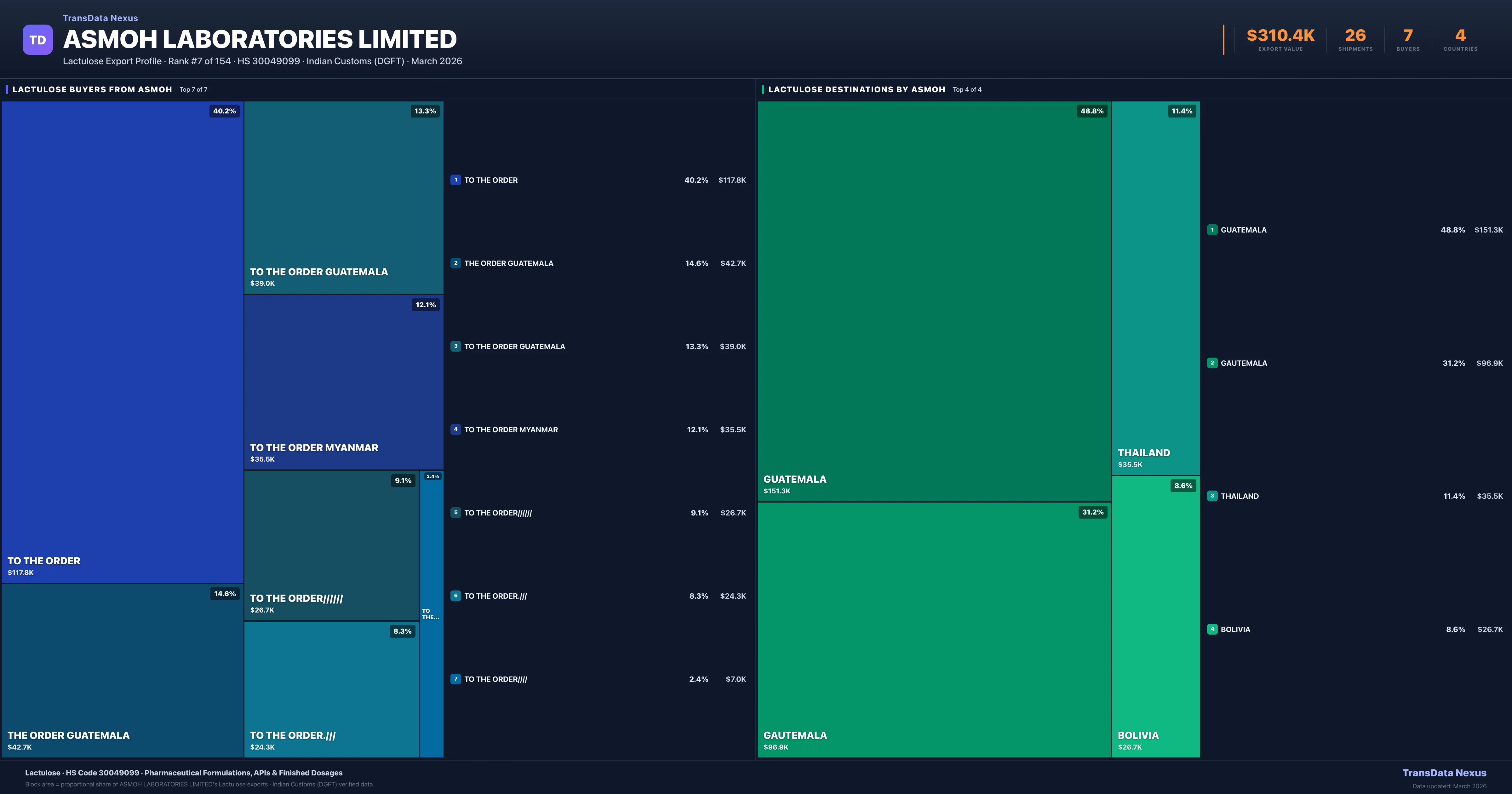 Indian Pharmaceutical Exporter · #7 for Lactulose · $310.4K export value · DGFT Verified