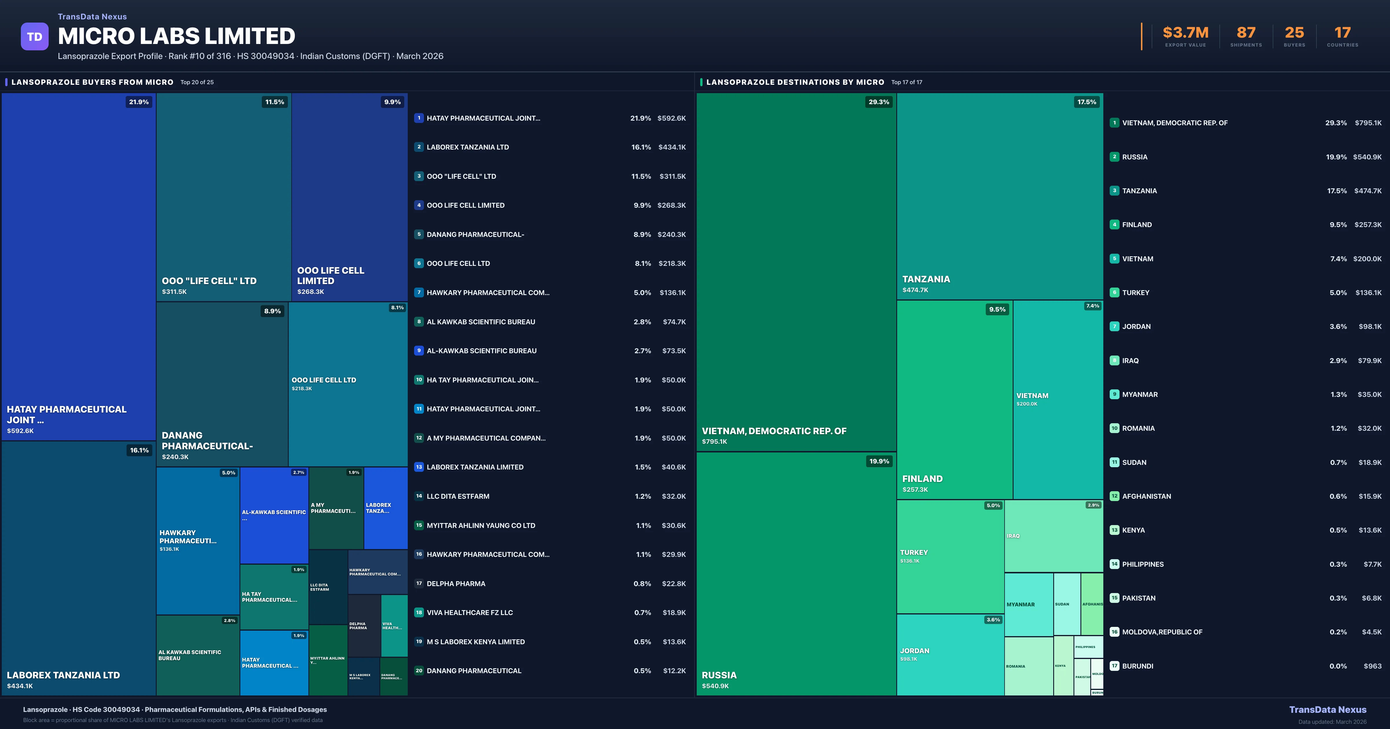 Micro Labs Limited — Lansoprazole Export Profile: Buyers & Destinations